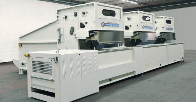 Today, Ofcine Gorgeri produces machinery and systems for fraying, for cleaning natural fbres, loaders to feed the carding process, automatic boxes for storage and blending, openers for recovering endof-line selvedges, vacuum cleaners and accessories for managing the pneumatic transport of material. The special feature of the products is that 70% of the machinery is standard, while the remaining 30% is the result of continuous research and development.
