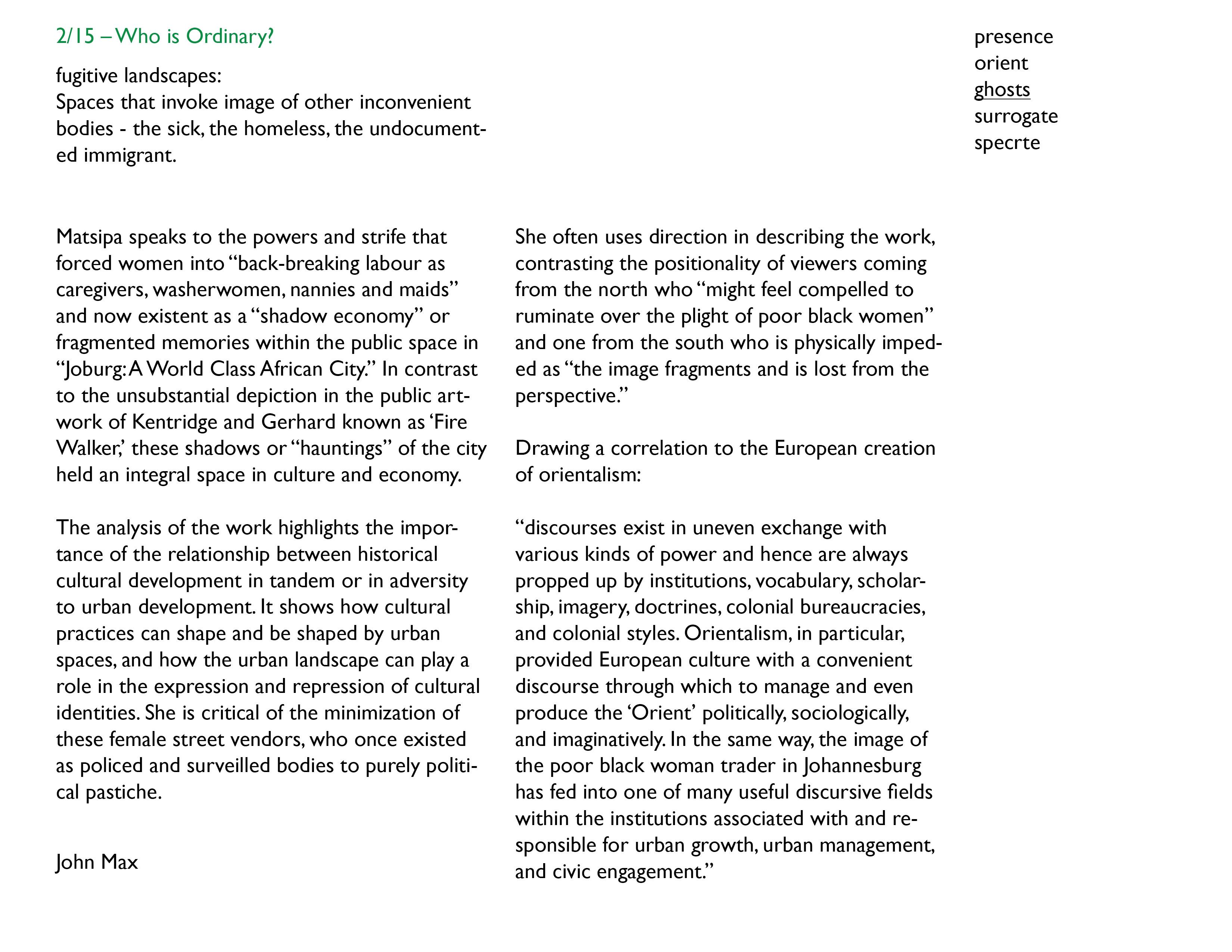 Foucault encourages us to consider alternative classification systems and possibilities, and Meauring and Traveling are tools that can be used precisely to challenge social assumptions by questioning systems of values, methodologies–and their many representations.