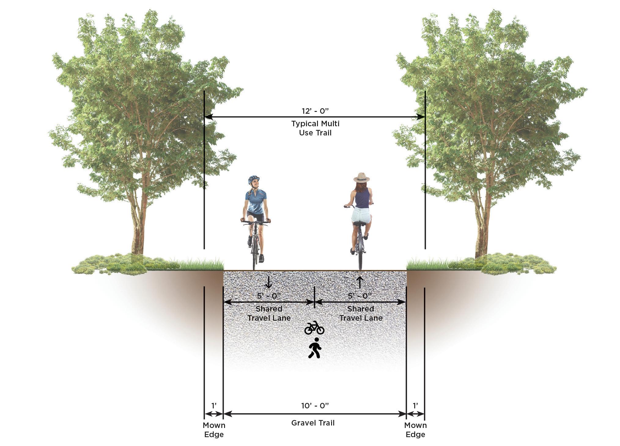 The Tri-County Regional Planning Commission consulted my team to assist in the route planning and conceptualization of trail networks throughout three counties. We developed a series typologies for route segments, taking into consideration various constraints within the network. The following cross sections were supplementary to corridor maps that illustrated which typology was most suitable for each segment of trail. Metrics including cost, comfort, safety, time to implement , and suitability are expressed with each typology to give the community and stakeholders a holistic understanding of the planning study.