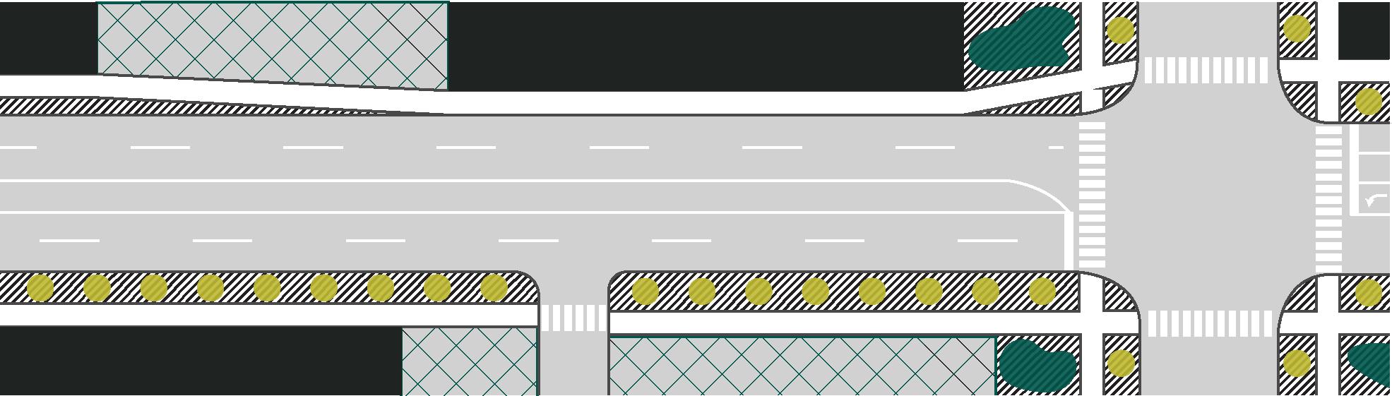 At the regional scale, the Corridor Framework focuses on transforming industrial corridors into ecological spines. These corridors link neighborhoods, parks, and natural systems while improving stormwater management, air quality, and connectivity. Strategies include bioswales, street-level green infrastructure, and stormwater capture zones integrated into transportation and industrial landscapes. The framework positions corridors not just as conduits of commerce, but as multi-functional green networks that mitigate flooding, reduce emissions, and create healthier, more livable environments across the city.
