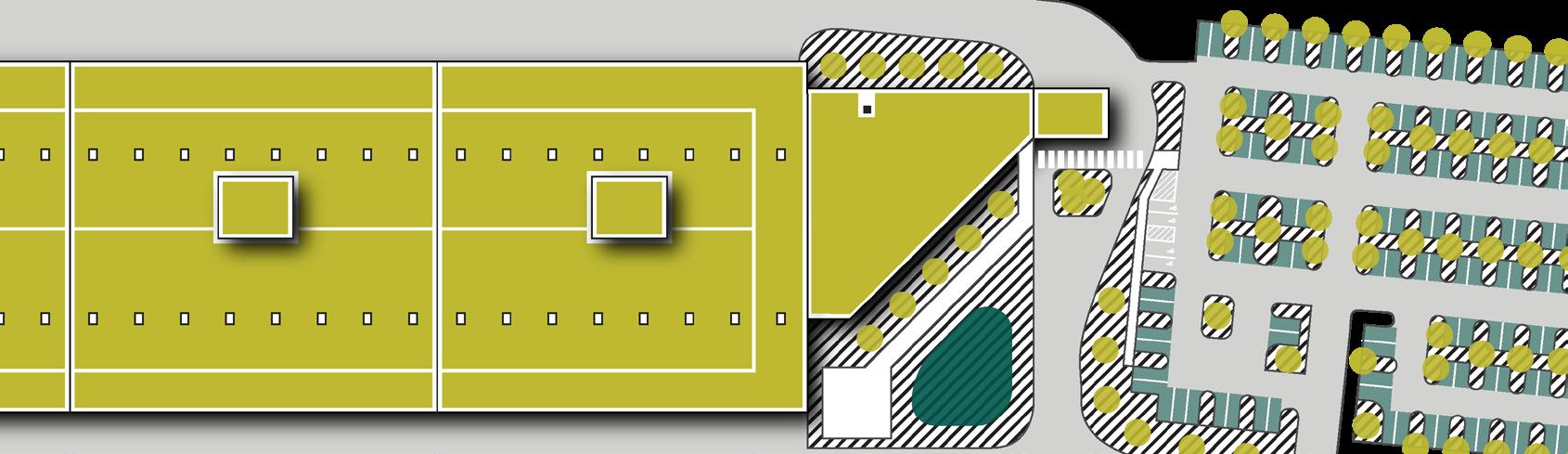 At the local scale, the Site Framework guides redevelopment with targeted interventions tailored to neighborhood needs. Strategies include green roofs, permeable parking areas, and urban forestry projects that absorb stormwater and filter pollutants. Each site acts as a testing ground for scalable solutions, linking small-scale ecological interventions into the larger Eco Ring system. By combining site-specific resilience measures with corridor-wide infrastructure, the framework ensures climate adaptation is embedded across both neighborhood and regional levels, creating a layered approach to environmental and social resilience.