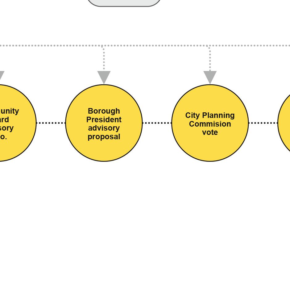 Most developments happen in New York “as of right.” This means that the proposed use for a project can proceed without a separate review if it matches a given site’s zoning. But if a developer wants to build residential condos on land that is zoned for instance for industrial use, or if the same developer wants to build denser buildings than what is locally authorized by the zoning code, then the zoning designation must be changed, which is where the municipal Uniform Land Use Review Procedure (ULURP) process comes in. ULURP could be defined, simply, as “a make-or-break vote” that takes place through a roughly seven- to nine-month long process (Curbed 2020). “These stages are also where the public gets involved, and where major drama can unfold; heated hearings, protests, and legal challenges are all par for the course” (Curbed 2020). Current proponents of reforms to the ULURP framework argue that there are always three separate sealed spaces in these rooms. The space of the session speakers who oversee addressing what is on the ULURP hearing agenda, through the most neutral of official programming. The space of community organizers, interrupting the session with their microphones and banners, which works more like an ephemeral one-minute way too vocal and quickly silenced intermission. Lastly the space of the residents - in other words the extras - but who do they represent after all, having the luxury to skip work in the middle of a Wednesday afternoon to come read a pre-typed letter voicing their concerns, distributed by one of their volunteer community representatives. The disconnect between these three groups of stakeholders is often strong, and this remains probably true for all steps of the ULURP process.