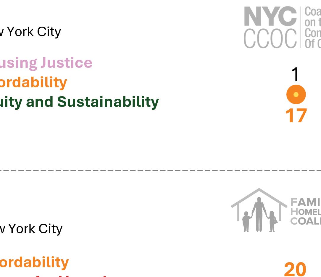 To address limitations and amplify collective housing advocacy in NYC, the report recommends forming a “supercoalition” — a coordinated alliance of coalitions that transcends individual organizational missions while preserving their autonomy. This supergroup would unify efforts around shared goals such as tenant rights, anti-displacement, affordability, and sustainability, enhancing strategic alignment and resource-sharing. Such a coalition would not only streamline advocacy but also elevate community voices at every level of governance, from neighborhood to city-wide.