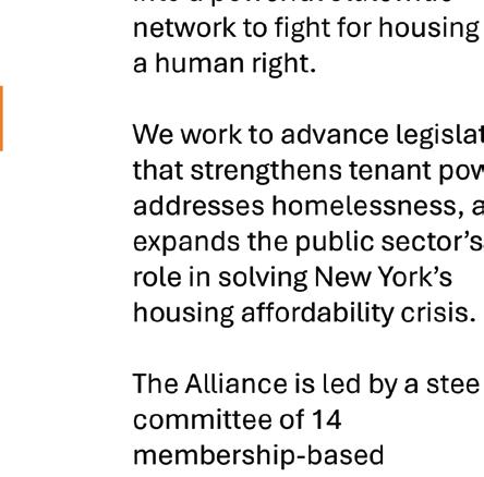 ing how actors collaborated and how their roles complemented one another. Finally, it will evaluate these coalitions based on campaign success, as defined by its ability to garner policy changes, housing outcomes, public engagement levels, and shifts in public opinion or political will. hat may not want to actively participate to main