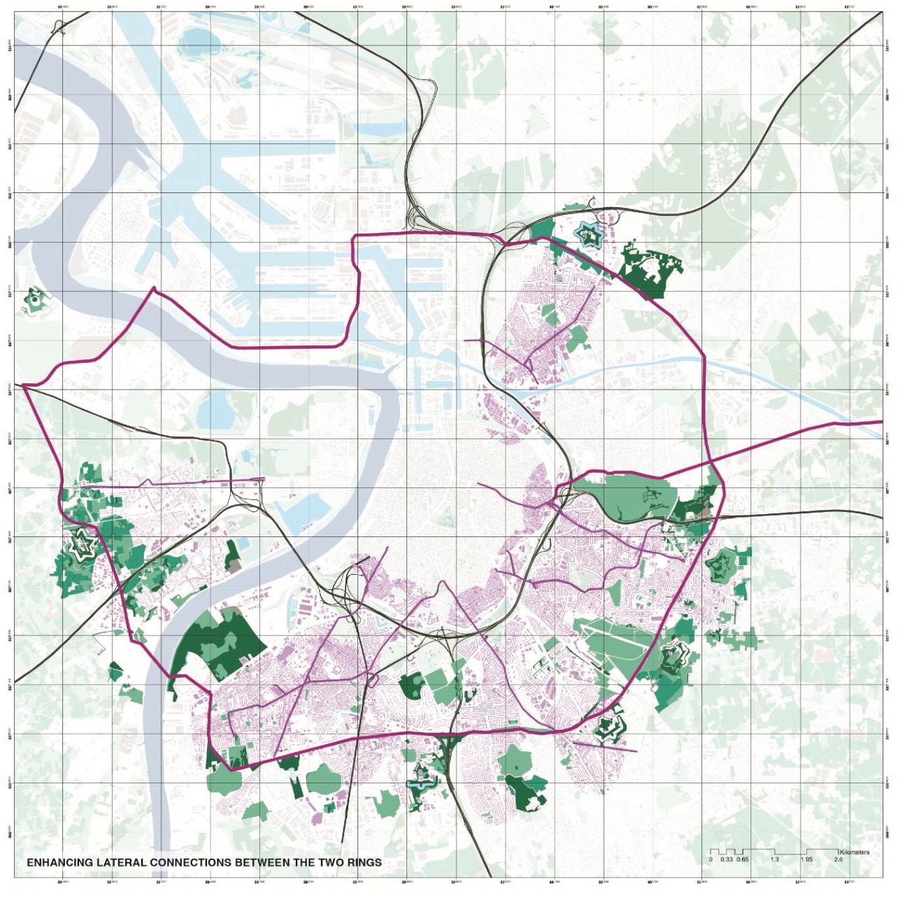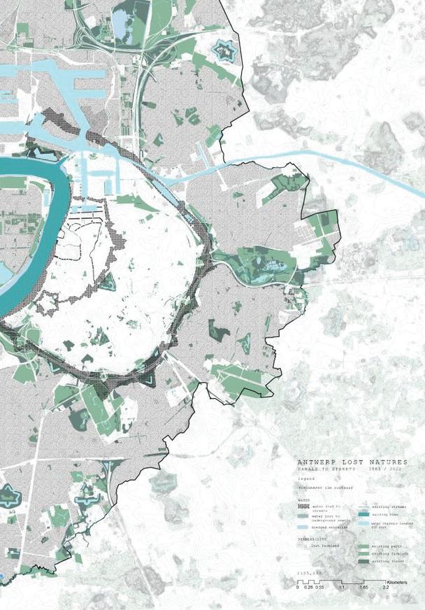 This studio aims to project the near-future scenario of Antwerp ‘s mobility and public space. We will challenge the conventional monofunctionality of urban infrastructure by proposing the interweaving of the under- and aboveground. Two major mobility enhancement projects are currently underway in the city: the ongoing construction of the Oosterweel Link, which will close the incomplete Antwerp ring road (R1), and the planning of A102, which will enhance the city’s overall mobility in a larger European Union (EU) context while diverting as much through-traffic as possible from the city. Although both routes have been planned to run mainly underground, the proportion of underground to aboveground for A102 remains undecided (in connection with the city’s reserved green space network), which provides the studio with a tremendous opportunity to reshape the city’s cardependent mobility infrastructure toward decarbonization. The studio will examine the four nodes on the planned route of A102 where the underground highway will rise to meet the existing community and public spaces above and will consider how landscape can facilitate a framework for such infrastructural change.