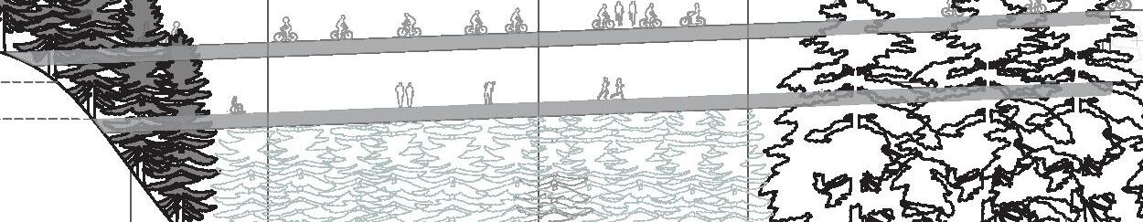 This project responds to both of these concerns while also responding to needs of public transportation and public space. Proposing a new vertical urban structure, this construction serves various stakeholders in regard to pedestrians, different modes of transportation, as well as stormwater management. Incorporating both blue and green spaces, this structure generates a new transportation flow that adapts to the movement of water.