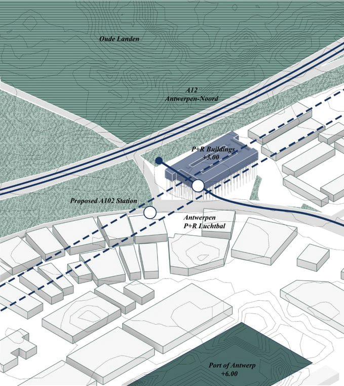 The proposed A102 will serve as the second ring road for Antwerp, with the intention of alleviating traffic congestion. However, we believe that multi-functionality is a crucial attribute of infrastructure in the current context of after urban sprawl and escalating climate change. The proposal demonstrates the potential of new above-ground and belowground infrastructure that can serve multiple aspects and should be adaptable, flexible, and able to collaborate in addressing future concerns.