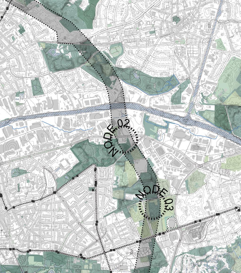 Two major mobility enhancement projects are currently underway in the city: the ongoing construction of the Oosterweel Link, which will close the incomplete Antwerp ring road (R1), and the planning of A102, which will enhance the city’s overall mobility in a larger, European Union (EU) context while diverting through traffic from the city as much as possible. Although both routes have been planned to run mainly underground, the underground-to-aboveground ratio for A102 remains undecided (in connection with the city’s reserved green space network), providing the studio with a tremendous opportunity to reshape the city’s cardependent mobility infrastructure toward decarbonization. The studio examined the four nodes on the planned route of A102 and considered how the landscape can