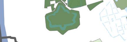 The current site of Node 4 is a fast-paced area dominated by cars with the lack of accessibility as a major issue on this site. The traffic circle produces several unsafe intersections for pedestrians on foot or by bike. The new site plan acts as a new fort. One which unifies the community through the land with infilled programs inside large landforms and wet moats.