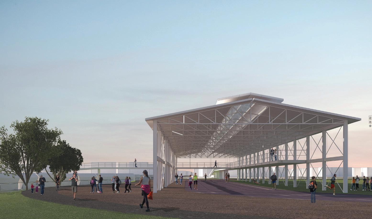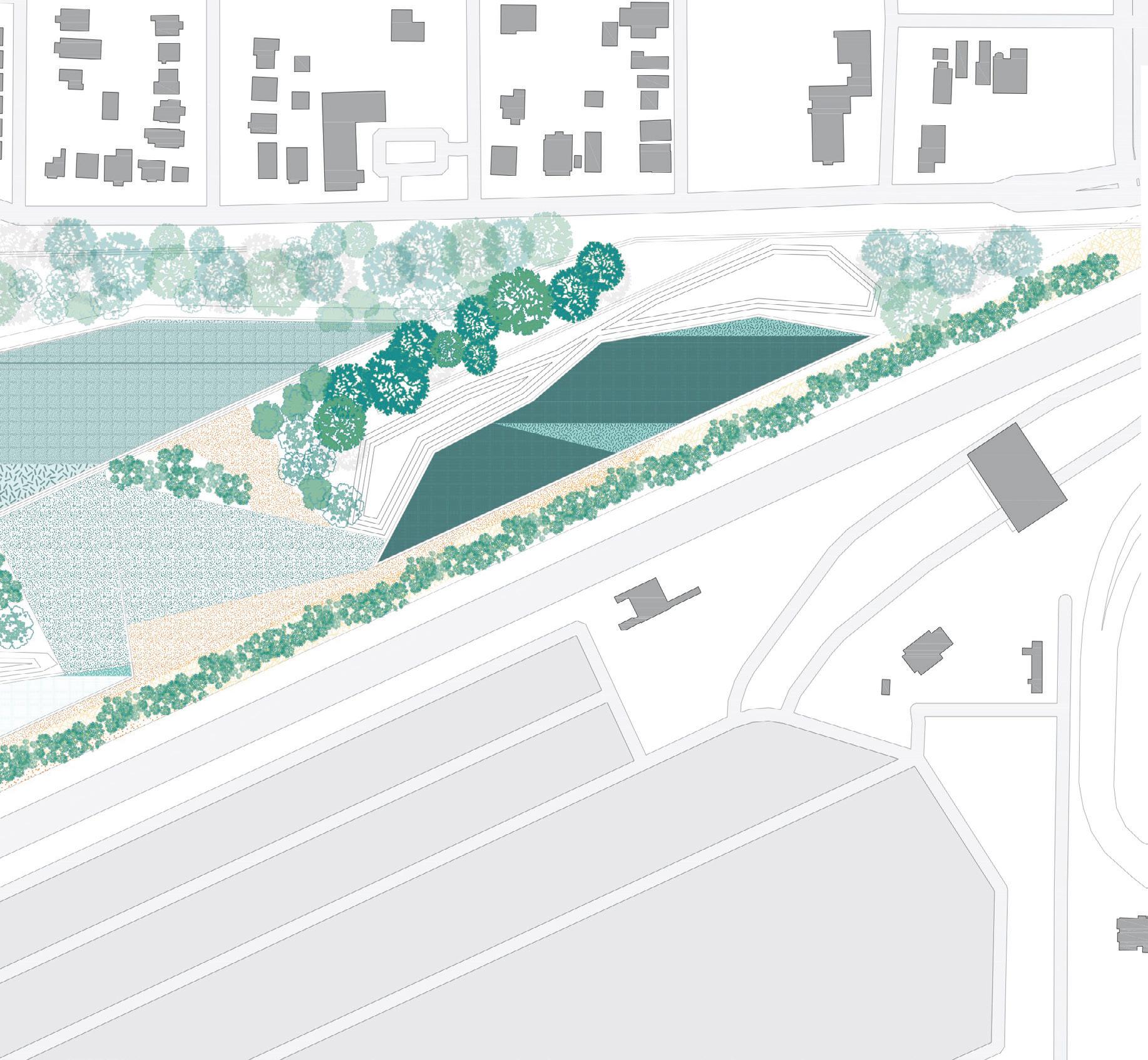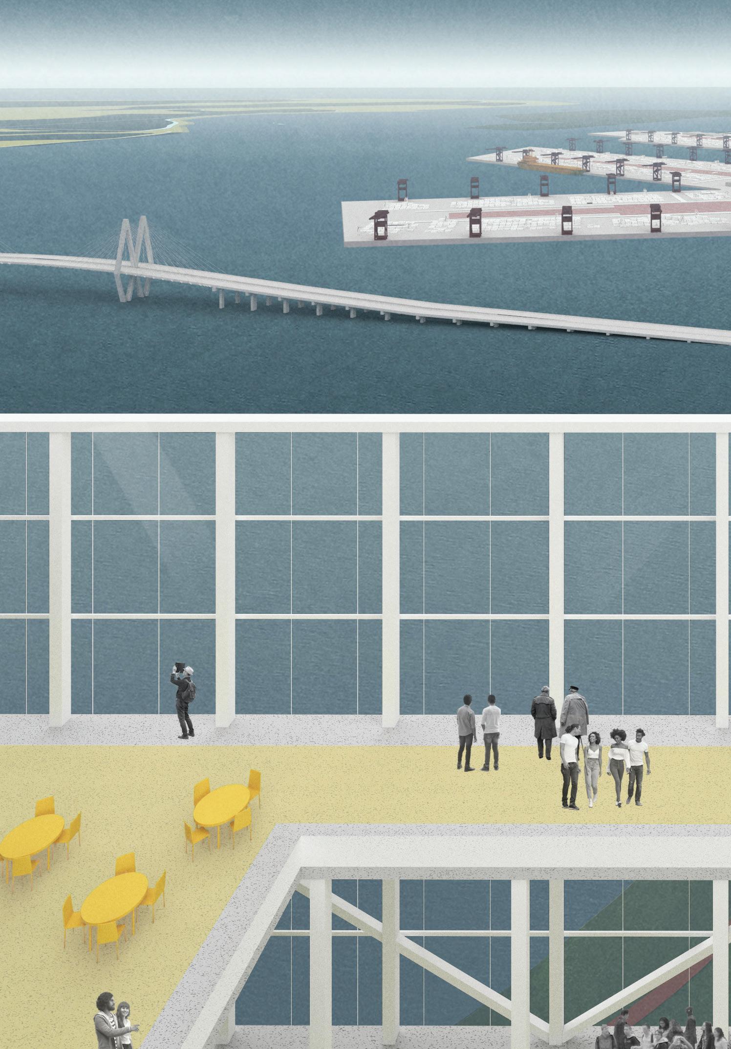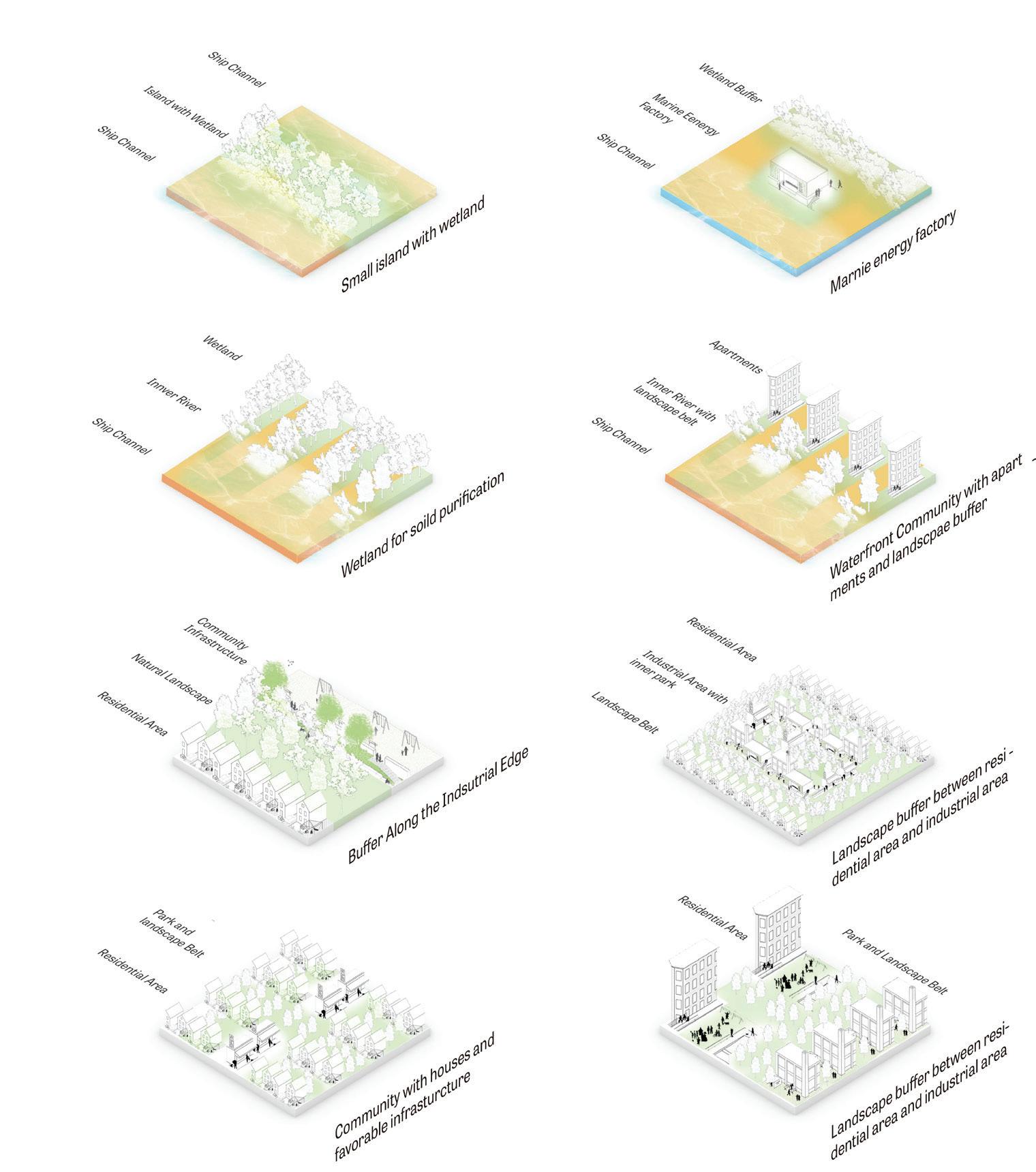 These new landforms create elevated platforms that integrate affordable housing and recreational facilities. This approach leverages infrastructural systems to create opportunities for low-income residents to live in desirable waterfront locations. The design, attuned to the fluctuations of the local ecosystem, creates a marsh ecology that benefits from periodic inundation, an energy tide connected to generation and use.