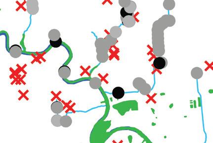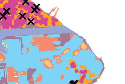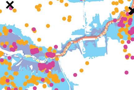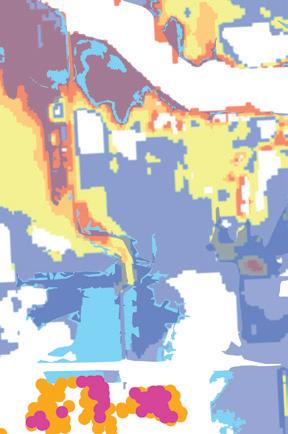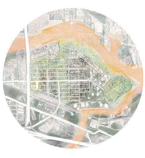The focus on communities and localized strategies for adaptation and mitigation put another issue forward. While a long-term vision for a post-fossil-fuel Houston is important, it is equally critical to develop ideas about what to do in the near future. This is not only because Houston is still vulnerable to climate shocks and stresses; it is also because change in the neighborhood—and the city—needs to be tangible and address ongoing community concerns in order to build trust and capacity for large-scale, long-term transformation. For this reason, the studio developed projects, in addition to a series of initial “what if” scenarios, that propose nearand medium-term steps as well as a theory and program of long-term change.