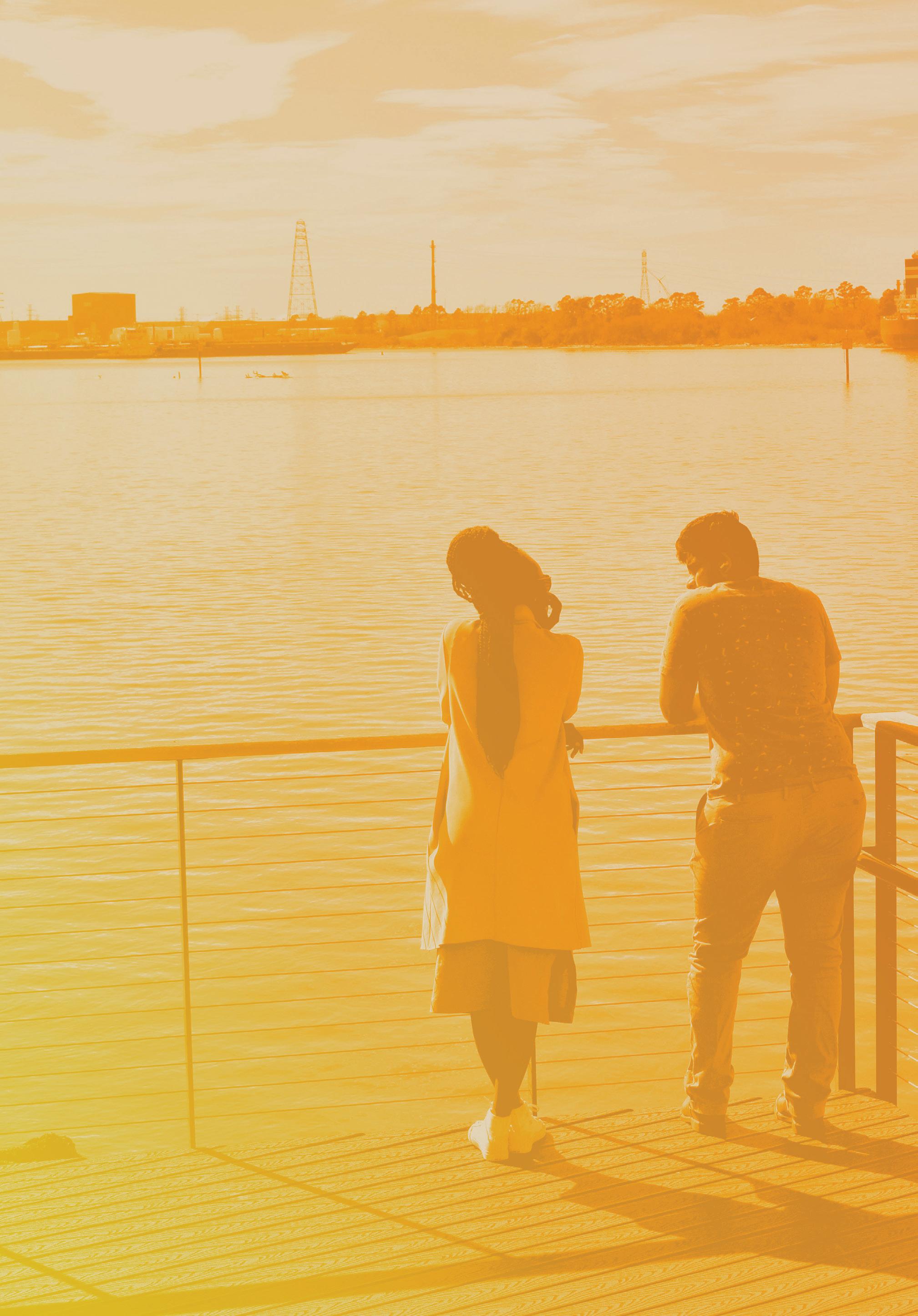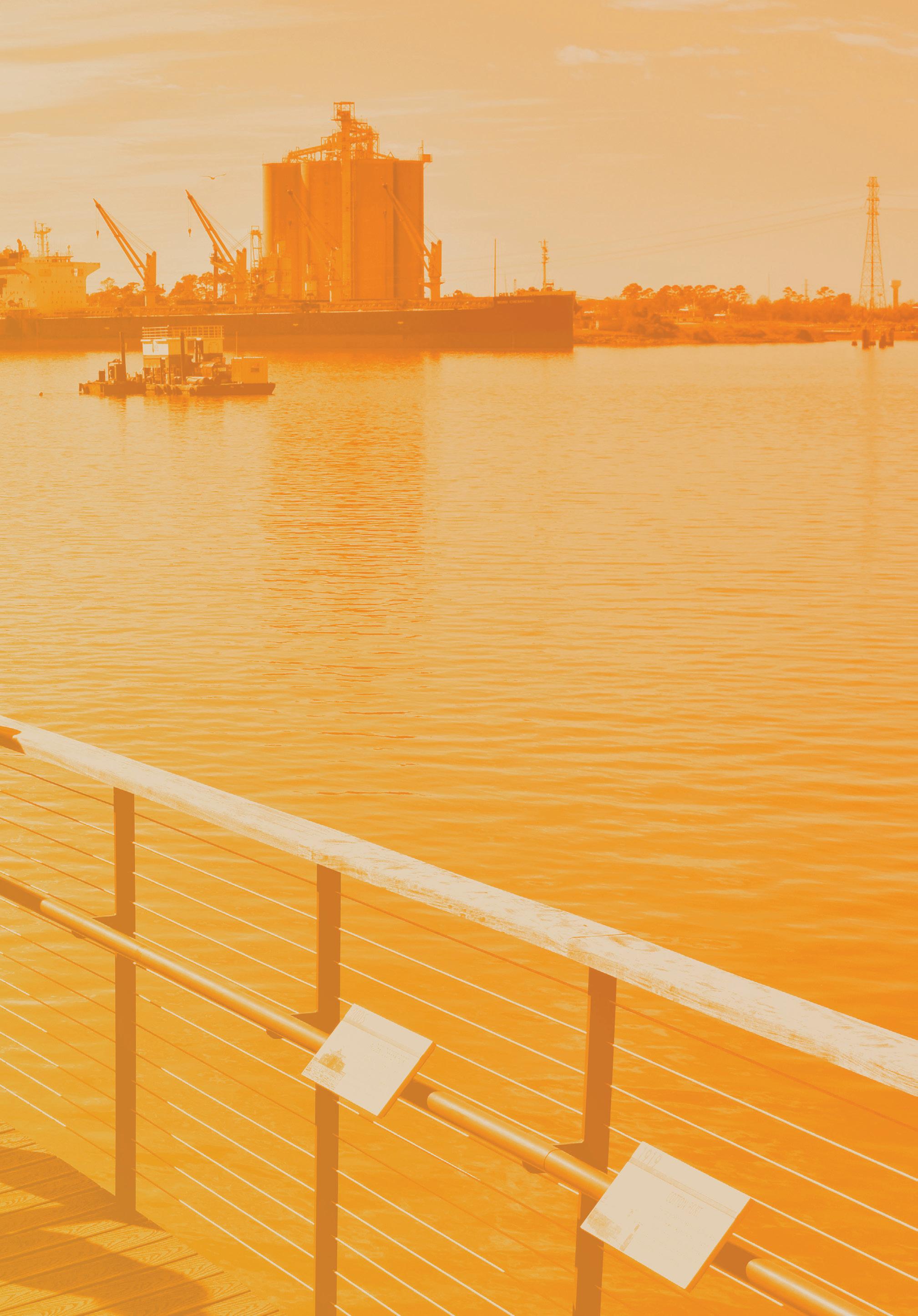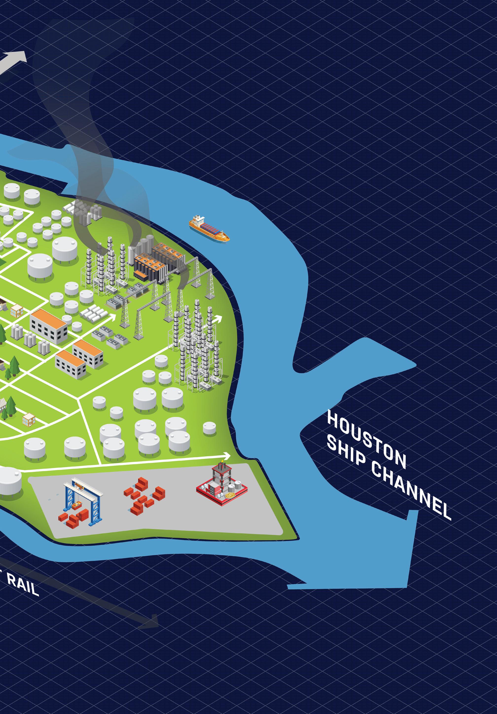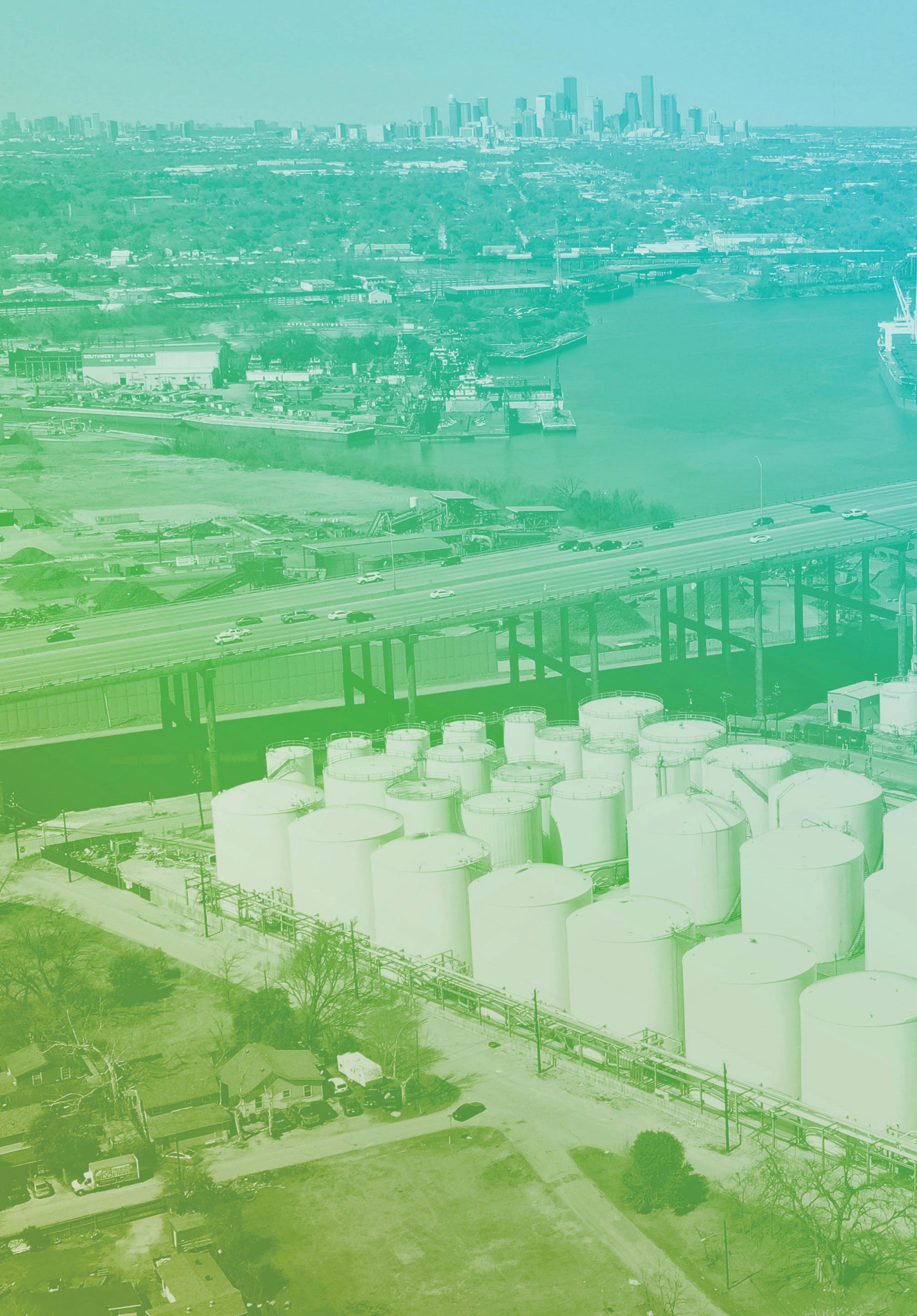 help the frontline communities, many of whom have been negatively impacted by industrial pollution affecting their soil, water, and air quality. The energy transition brings significant opportunities to these historically marginalized communities. Land use changes in the Ship Channel area can enable its isolated neighborhoods to better connect with one another, pursue economic opportunities, and adapt to climate change. Nature-based solutions to protect from floods and store water can be combined with recreational amenities and ecological restoration to increase biodiversity. Because they can capture carbon, these efforts would support the Port of Houston’s goal, as stated in April 2022, to be carbon neutral by 2050.5 And, in a more decentralized energy transition scenario, significant local investments, such as the Sunnyside Solar Project, might make the Ship Channel’s communities more livable and resilient while creating local jobs.