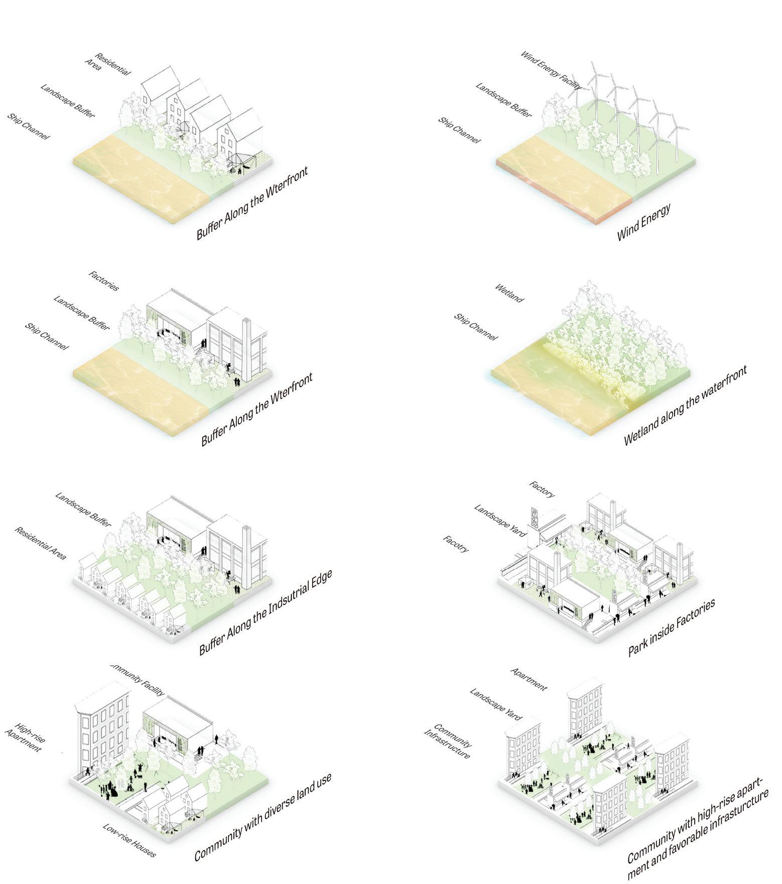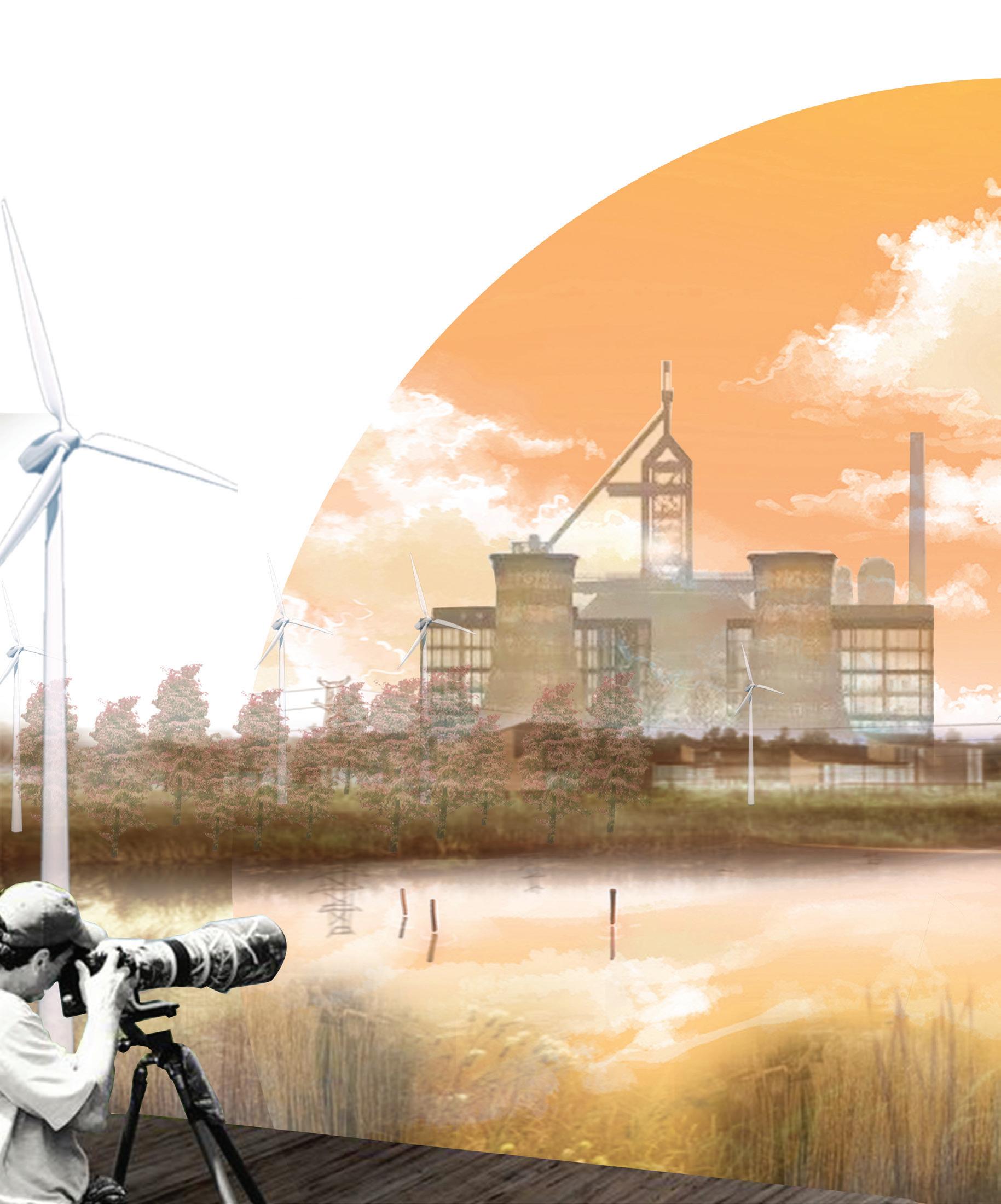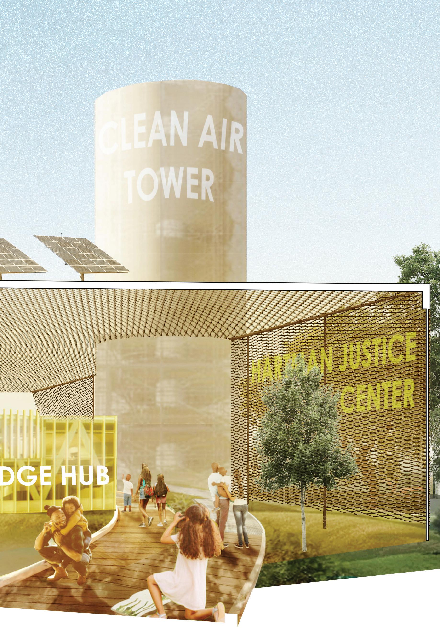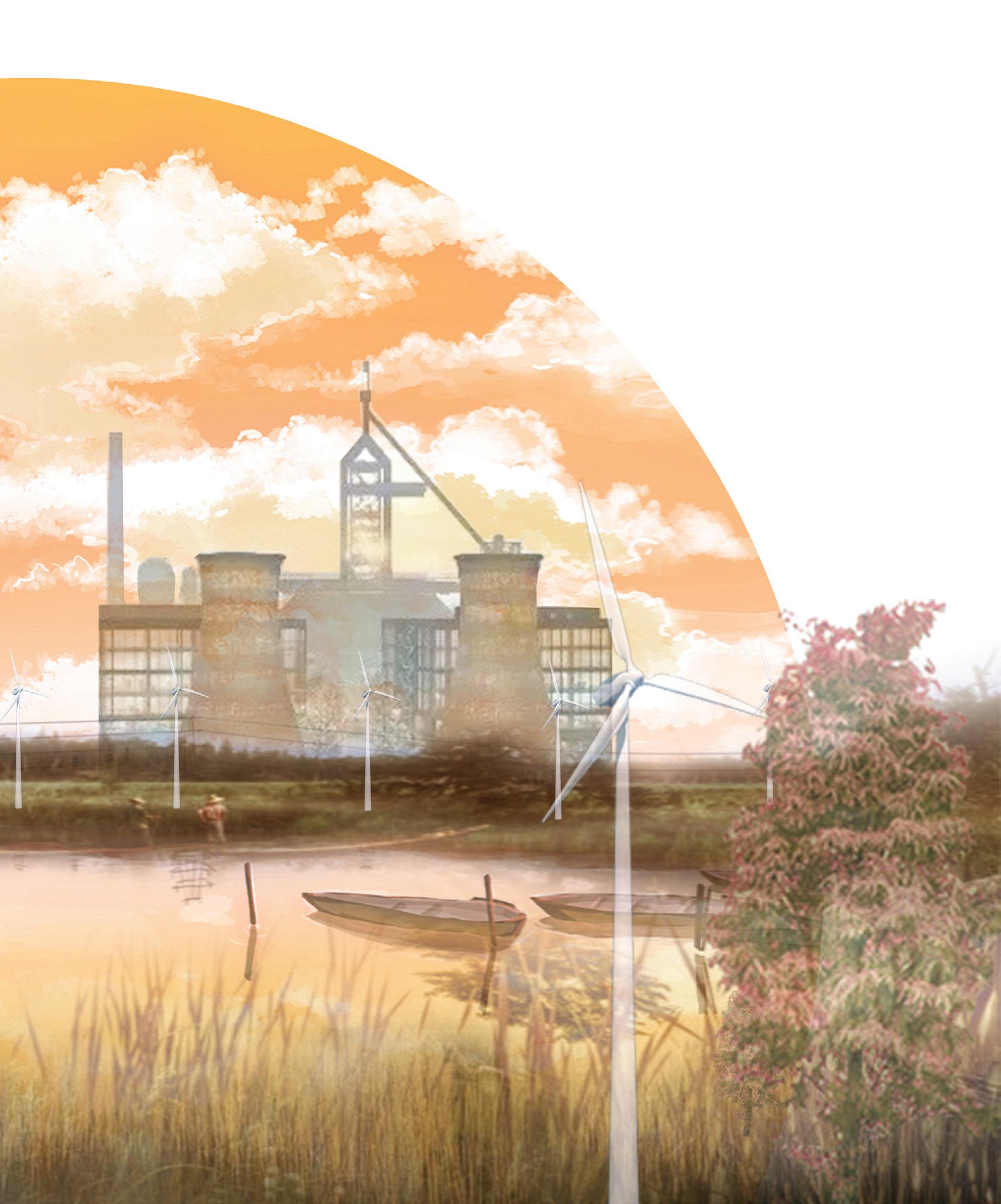 Given the urgency of the climate crisis, the seemingly binary choice between an energy transition driven by big business or by local actors is overly limiting. A look at recently-passed federal acts show that the kitchen sink is being thrown at the problem. By refusing to follow just one path, we have been able to hold inclusive conversations with guests from government, business, and local communities that joined the studio and its reviews. In the process, the studio learned about the site’s history, the relationships between industrial and residential areas, and the opportunities offered by the energy transition. We began to understand the ways that the energy transition can be used to drive a just transition that works against legacies of environmental racism while preparing for a radically changed climate.