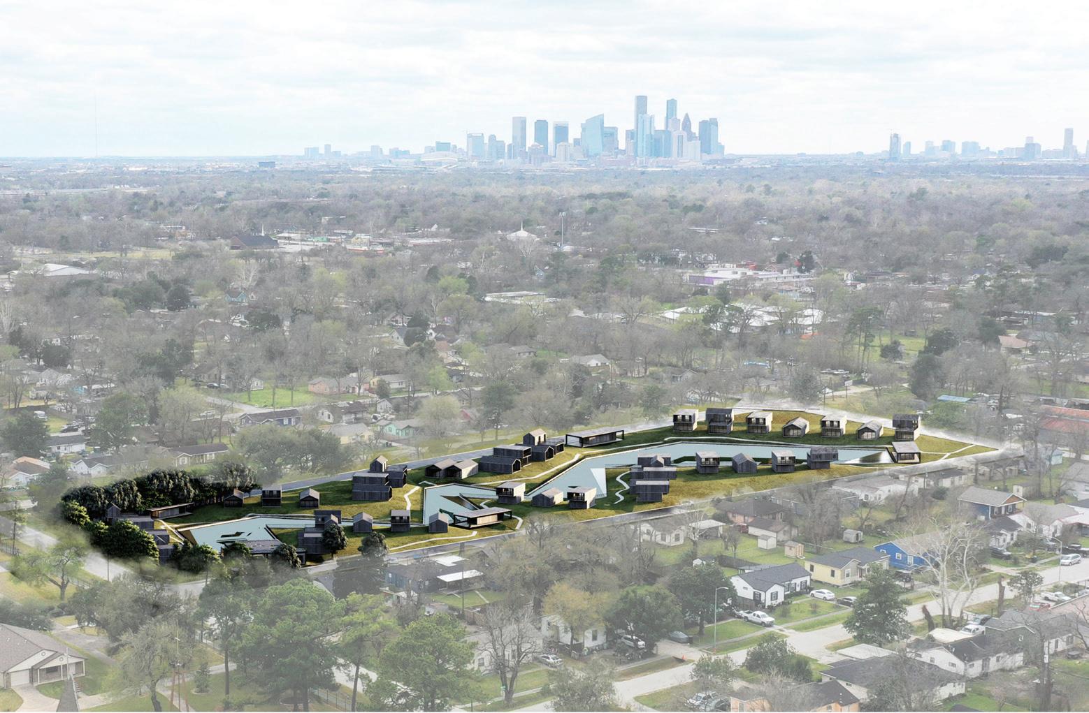 Today, however, Houston’s sprawl and hermetically sealed towers have become visible emblems of how not to design for a planet in peril. An alarming rise in extreme weather events, combined with rapidly increasing temperatures (Houston averages temperatures that are already three degrees higher than they were at the end of the twentieth century) and numerous social and spatial inequities, make it urgently necessary to imagine alternative futures for the city.