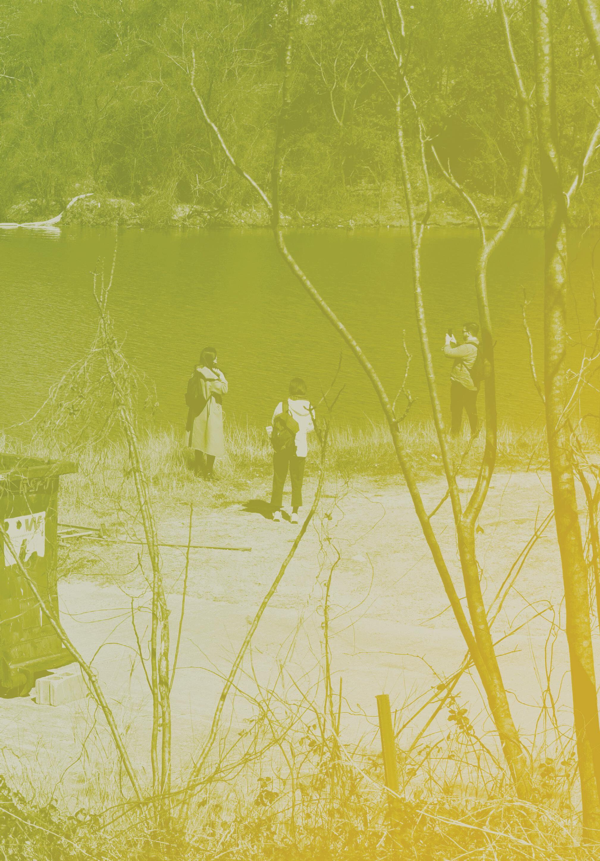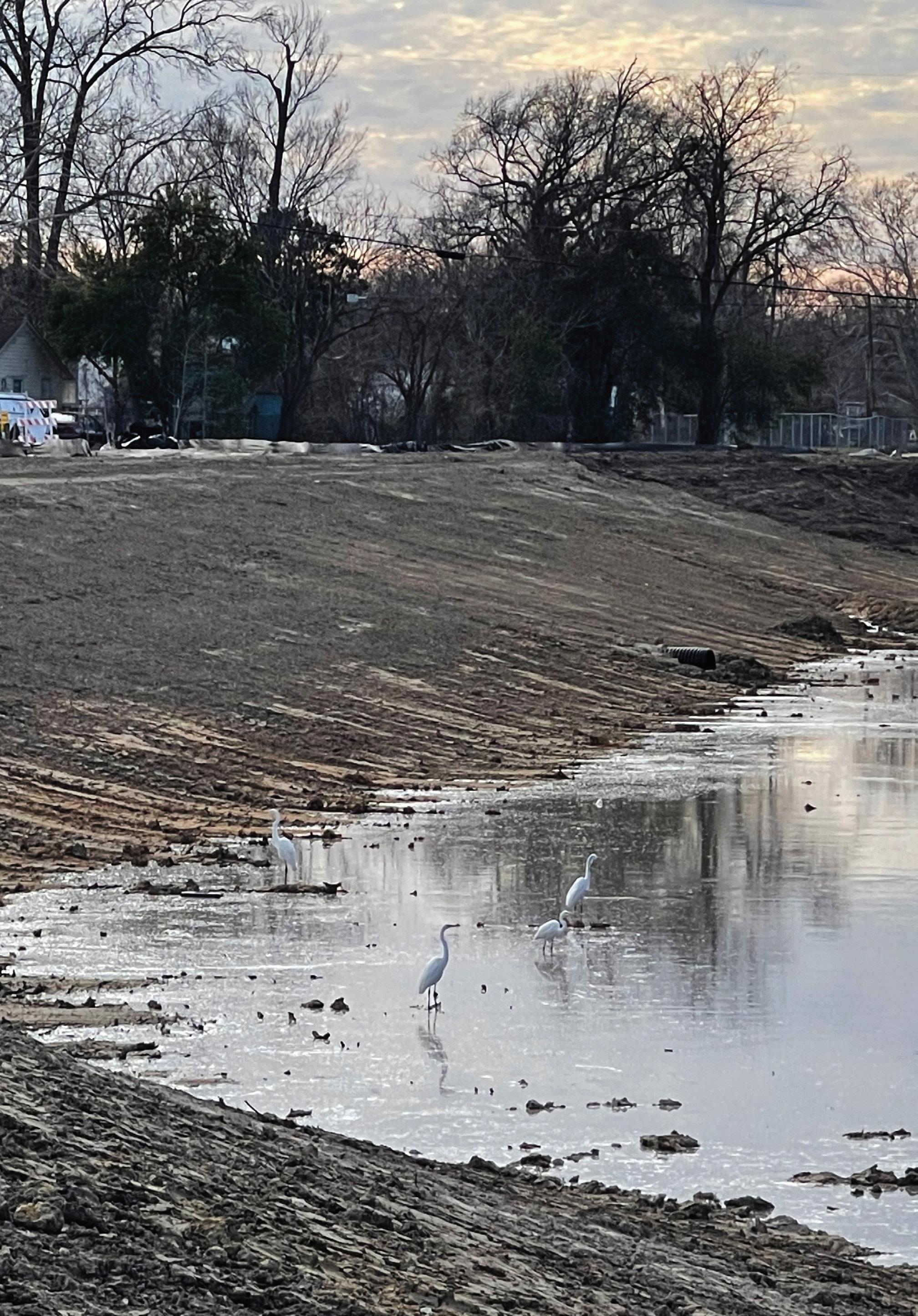 She interned with the city’s Resilience by Design program. Their mandate was to meld innovative planning and finance tools with regenerative and restorative design practices. Her biggest contribution was designing the redistributive finance and governance tools, including reparations for direct harm like the cancer clusters in Fifth Ward and Manchester. She also helped develop newer tools like environmental, resilience, and social-impact bonds. Communities would have a stake in resilience and adaptation investments and receive dividends if they were successful in mitigating flooding and reducing contamination, thereby reducing recovery and insurance costs for the city. A local committee managed the proceeds from these investments in the equivalent of a neighborhood sovereign wealth fund housed at the post office bank. Years later, Lupita became a board member for her neighborhood’s fund— that of Kashmere Gardens, redesigned after it was overwhelmed by Harvey and devastated by Ernesto. New design features included elevated blocks and homes, small detention ponds, and green buffers and other nature-based methods of cleaning contaminated water. The most beautiful part was the rewilded park near Alicía’s school, Kashmere Gardens Fine Arts Magnet Elementary. She and her friends spent hours there during class and recess!