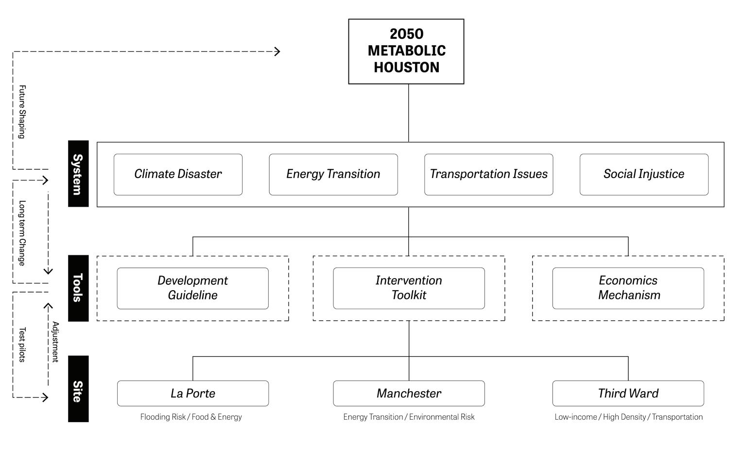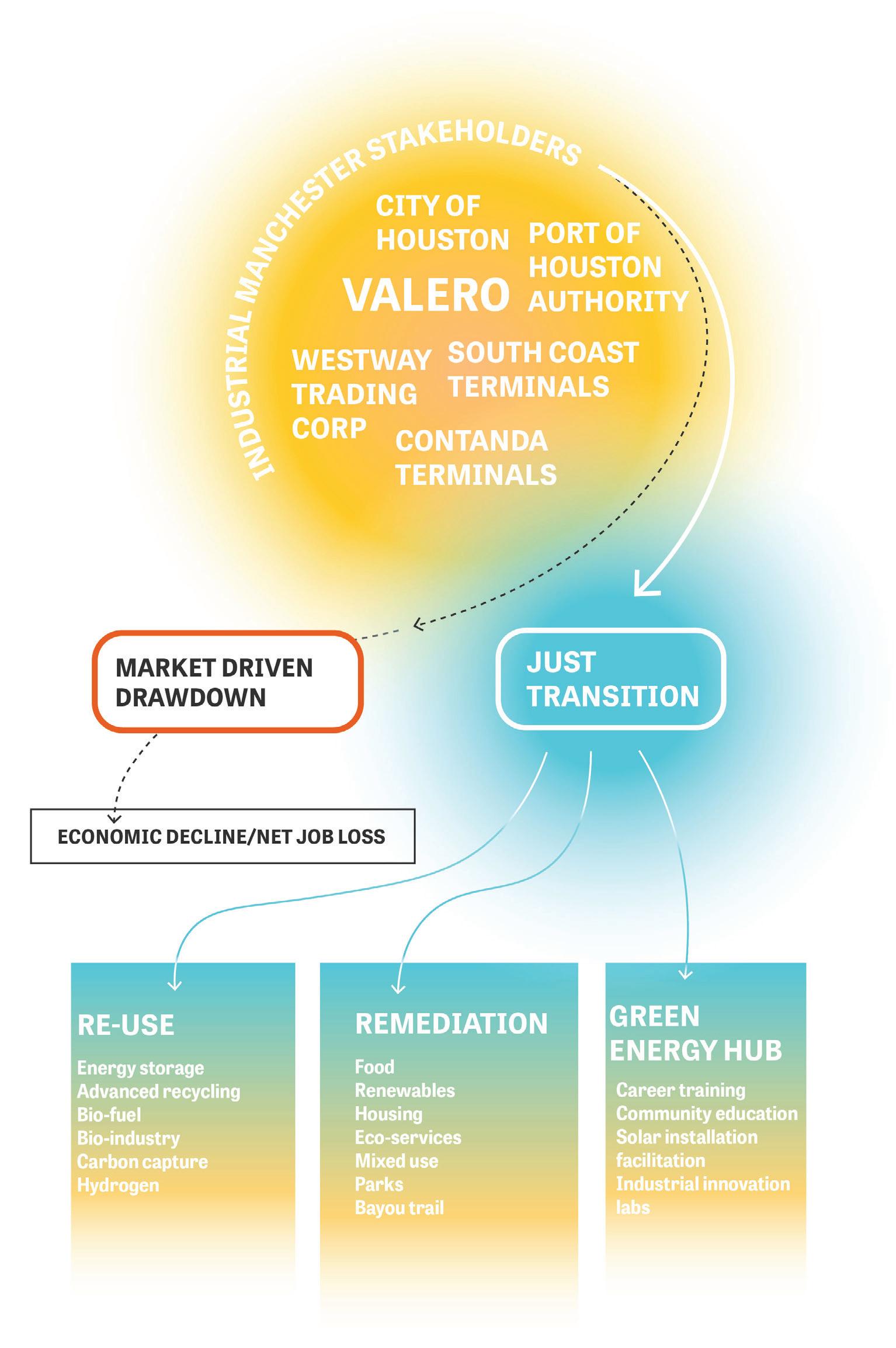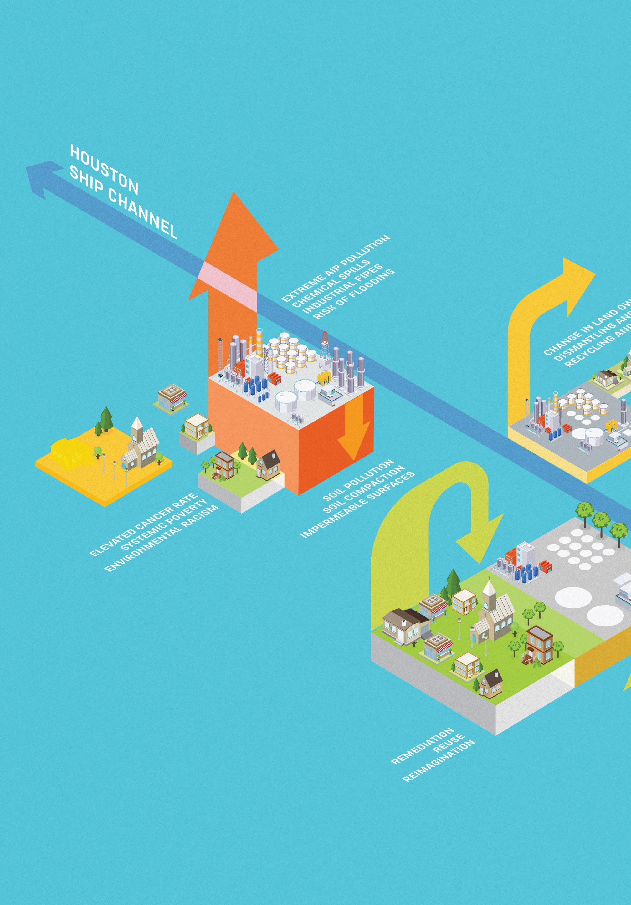 The City of Houston, and even industry organizations such as the Greater Houston Partnership, acknowledge the need to transition away from fossil fuels. For a city shaped by the energy industry, especially around the Ship Channel, this will provide opportunities to reimagine large swaths of its urban area. Questions about this transition, however, abound. How can it unroll, and will it be fast enough? Who will drive this transition, and who will benefit? What are the spatial interventions that can trigger innovation?
