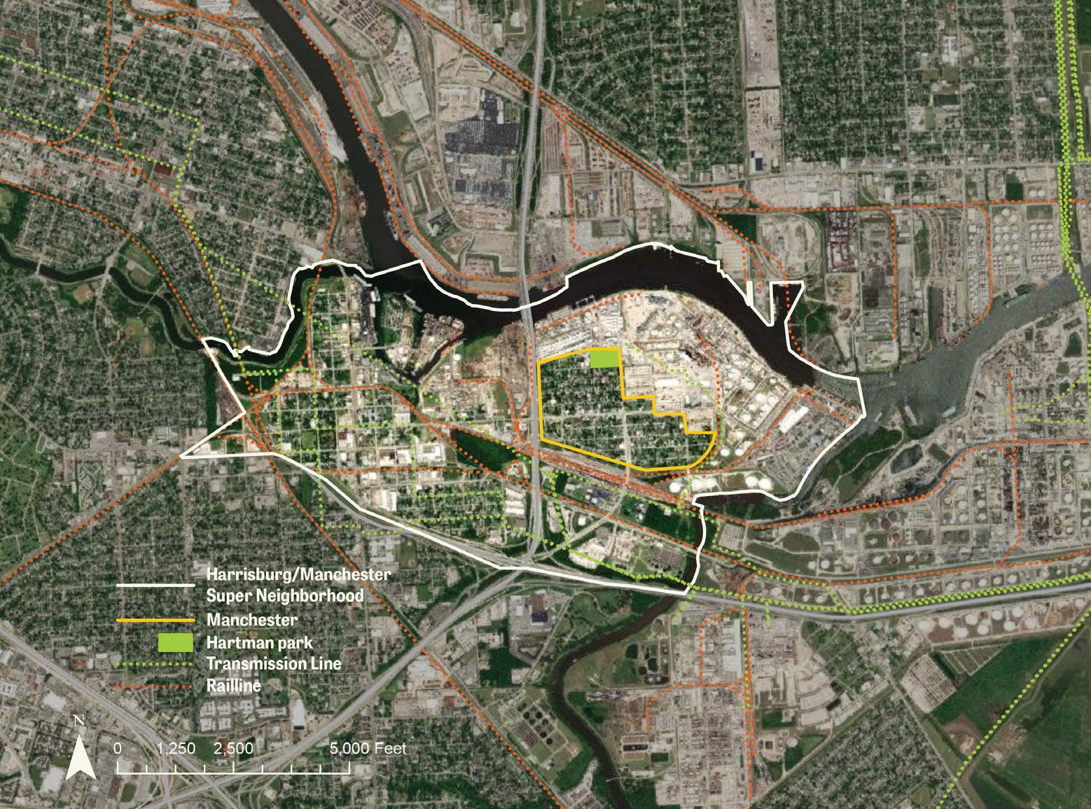 HARRISBURG-MANCHESTER, 2040The historically black Fifth Ward has been negatively impacted by gentrification, soil contamination, lack of food access, and disinvestment. While community leaders, such as Cleo Johnson of the Black United Fund of Texas, work to create opportunities for Fifth Ward residents, there is still a tremendous need. Our intervention in the Fifth Ward, the Green House, is thus focused on remediation and food sovereignty.