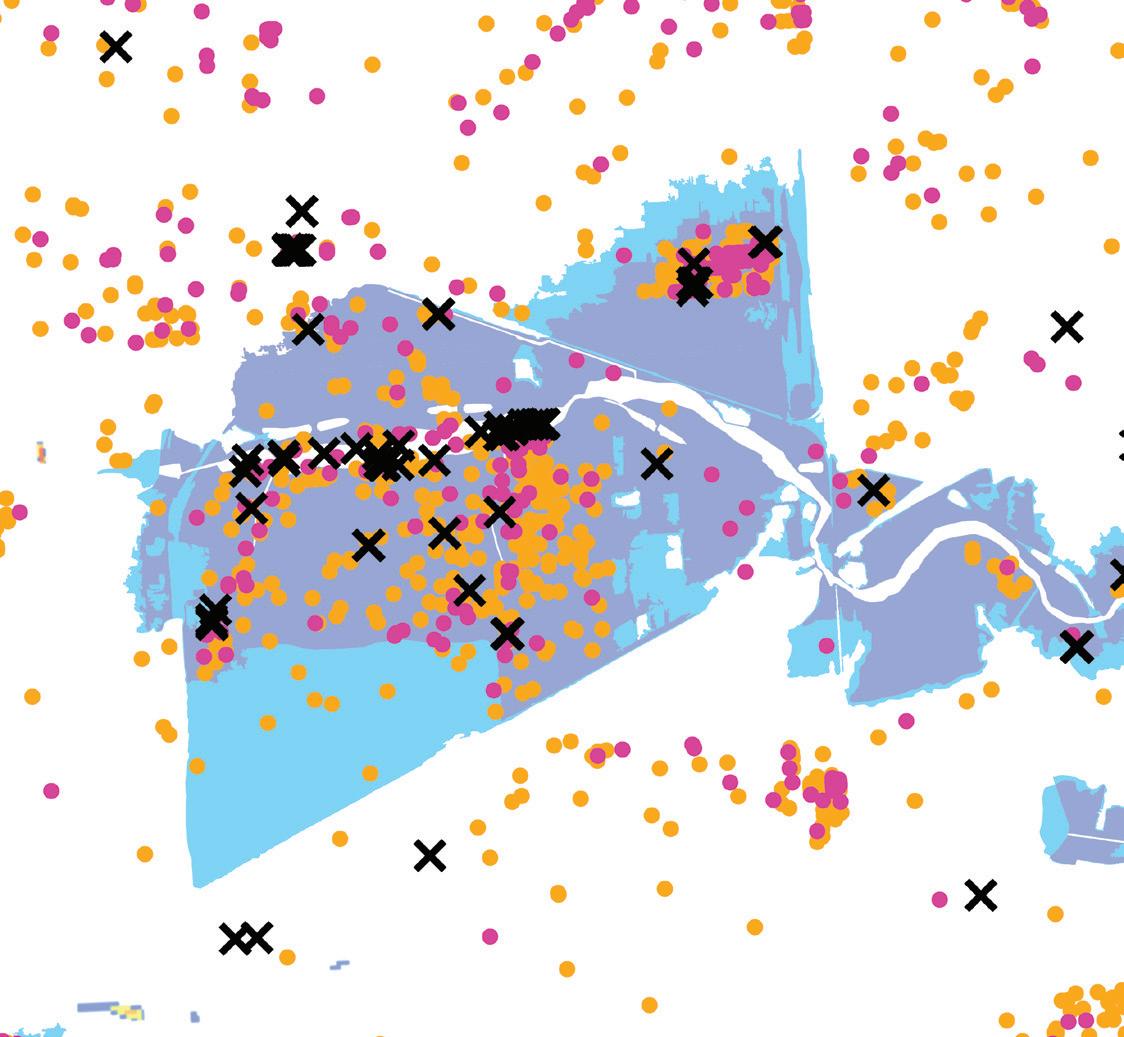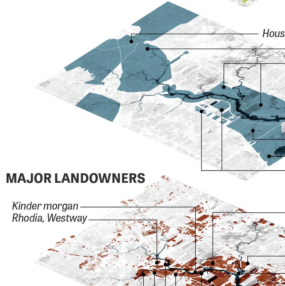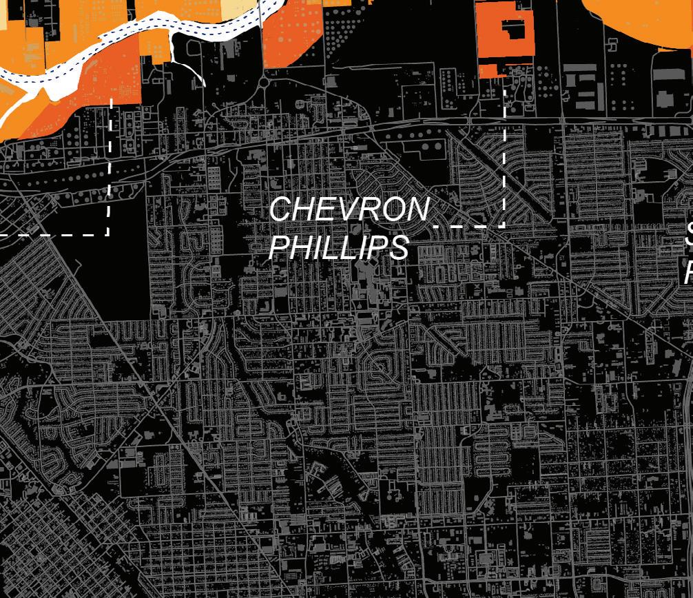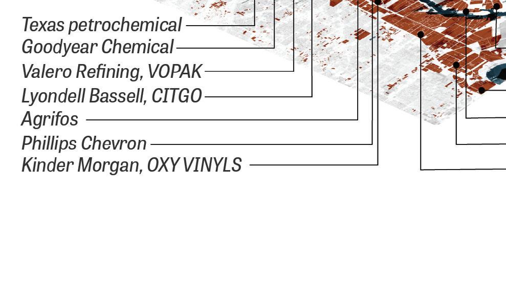While we do not know how the energy transition will play out in the Ship Channel, we do know that the spatial impacts will be significant. The chemical giant Lyondell Basell’s announcement that its seven-hundred-acre Houston refinery would be shut down in 2023 seems a likely precursor to many land use changes to come.4 Such sites can be reused for clean energy or for functions that are ill-suited elsewhere. The drawdown of contaminating industries will also