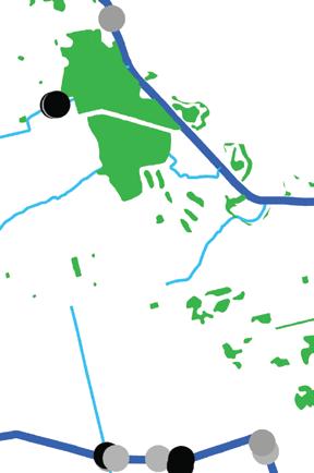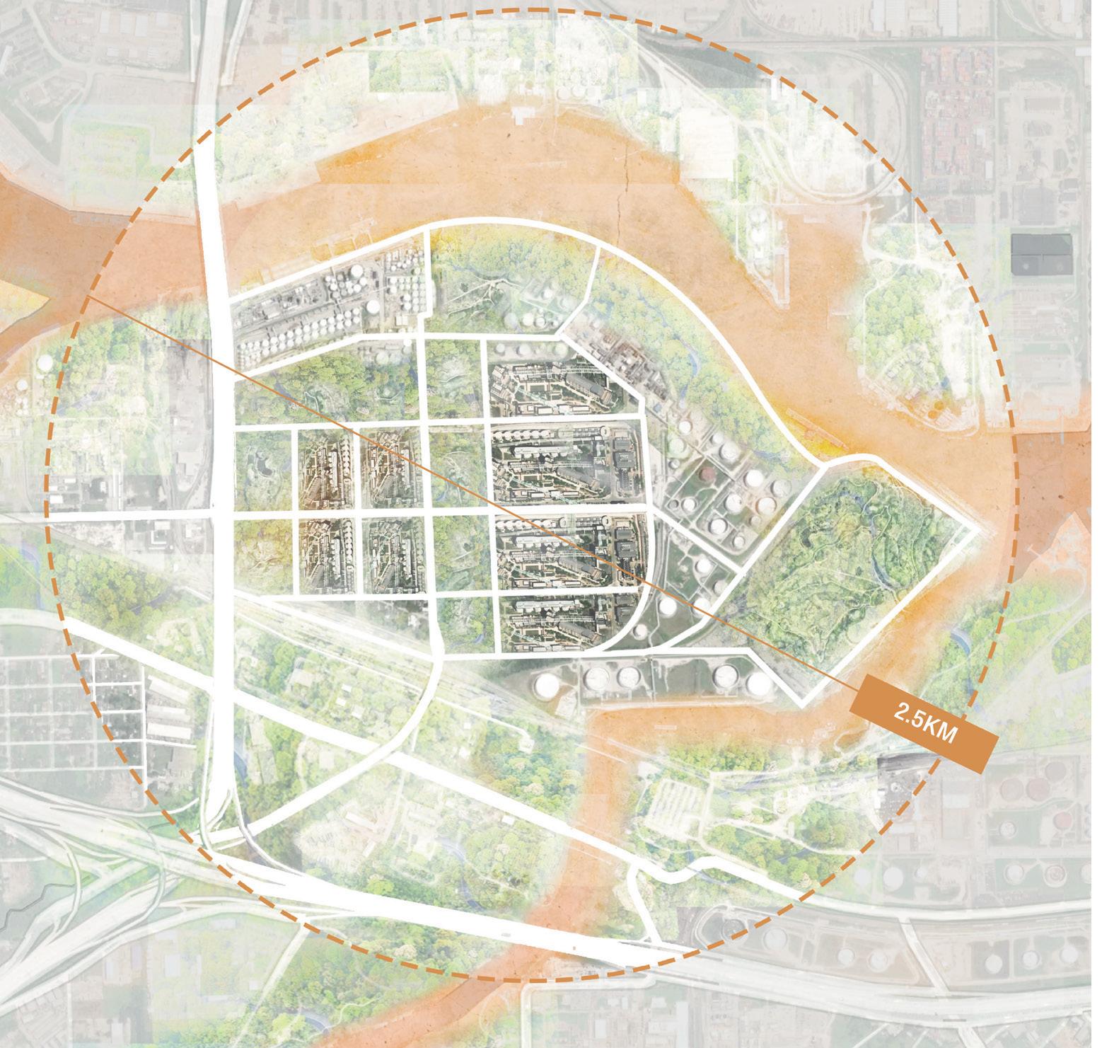 The synergy between bath and biomass generation materializes the energy production process, making it a tangible experiential event that fosters an understanding of alternative energy possibilities. The intervention connects the four adjoining neighborhoods with a new, emerging community that targets the primary, secondary and tertiary forms of illness prevention.2 Refinery closure and remediation removes the source of carcinogens, while a new community health center provides screening and routine care and neighborhood retail offers local food access. Finally, transit-oriented development around the extended light-rail Green Line, the underpass park, and expanded sports facilities improve connectivity to promote social and physical wellness. While the Power House serves as an important node in the emerging renewable energy network, it is connected to a broader energy landscape of former industrial sites that are to be converted to renewable generation over time.