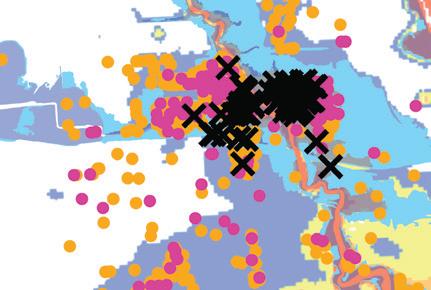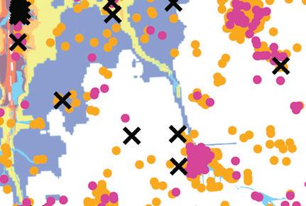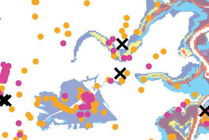 Part of this ambitious semester was devoted to research, conducted in groups and resulting very quickly in an important shared resource. Experts joined the studio at points to expose the students to strategies of geological sciences, urban development, data science, and community engagement, among others. Our partnership with AECOM, which made this studio possible, afforded us access to still further information, expertise, and assistance.