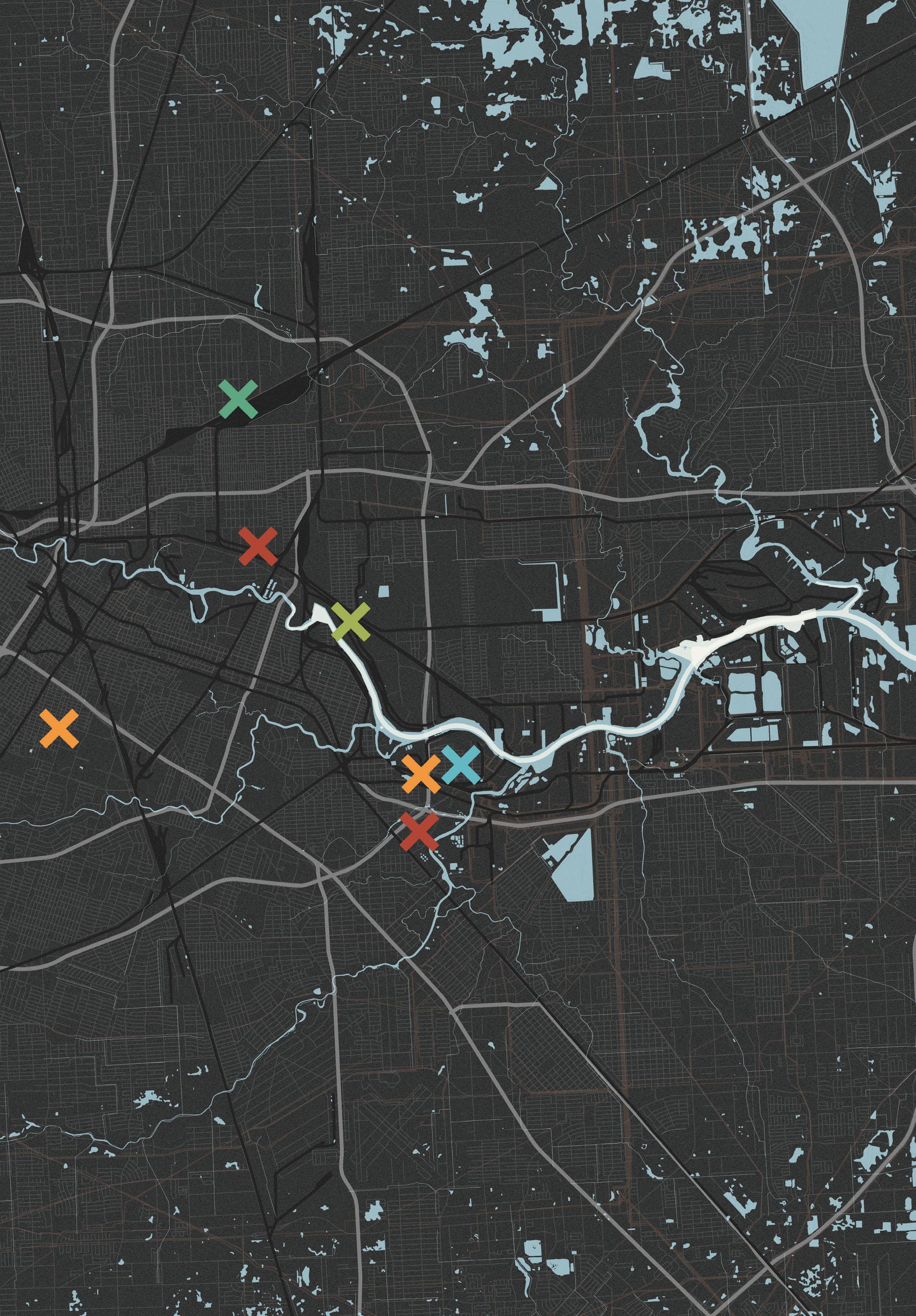 Center, downtown, all the way along the Ship Channel from the Third Ward, Kashmere Gardens, through the Fifth Ward, Manchester, Pasadena, Deer Park, to the San Jacinto Monument, La Porte, and Baytown. This on-the-ground experience (between two trips in February and March of 2022), along with the review, bolstered the studio’s understanding of Houston as a place: namely, its unique local culture and the immensity of its scale, over ten thousand square miles (approximately 26,000 km2)—which, without visiting, would have been impossible to comprehend.