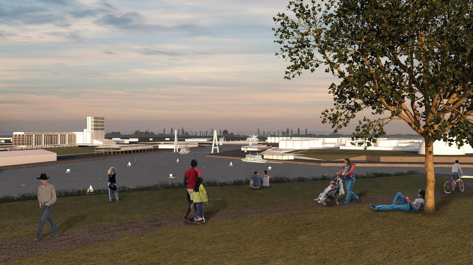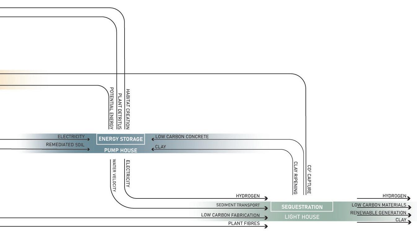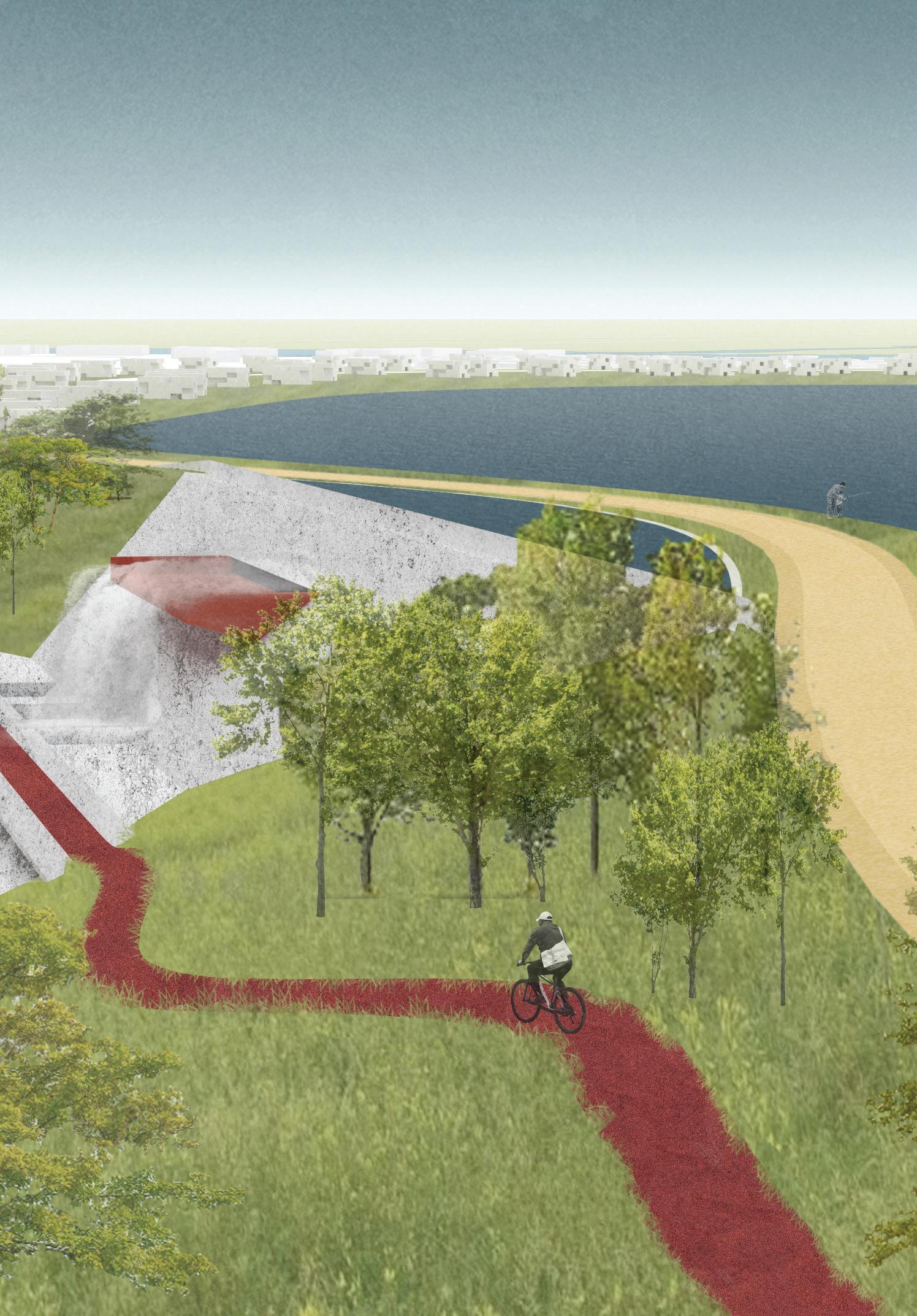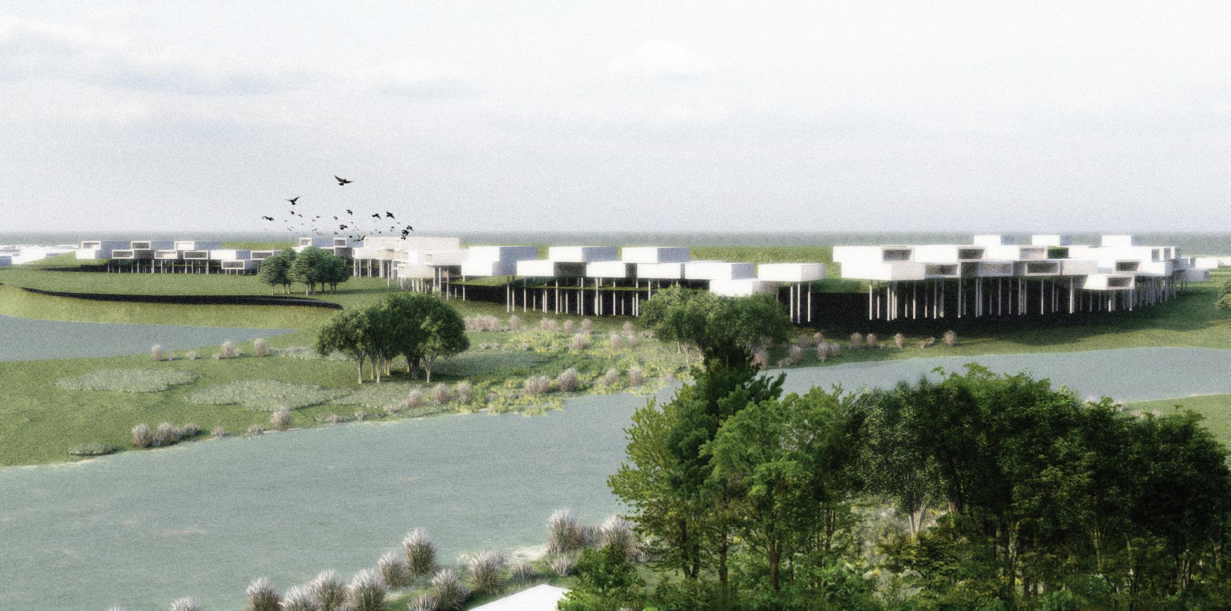 The Pump House creates an intertwined ecological energy landscape that offers views of the channel for residents of Channelview, while providing energy storage and lake-side living.