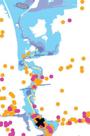 Channelview is a predominantly low-to-moderate income community critically underserved by parks, with only six acres out of the ninety total acres of parks recommended by Harris County.3 It is in need of affordable housing and improved recreational opportunities. Moreover, dredge deposits and petrochemical facilities block any actual view of the Channel. There is, therefore, an opportunity to shift the dredge deposition process in order to produce a more integrated relationship to the bayou. Long treated as a mere byproduct of channel operations, dredge in fact may be used to create pumped storage facilities that fill gaps in renewable energy generation.