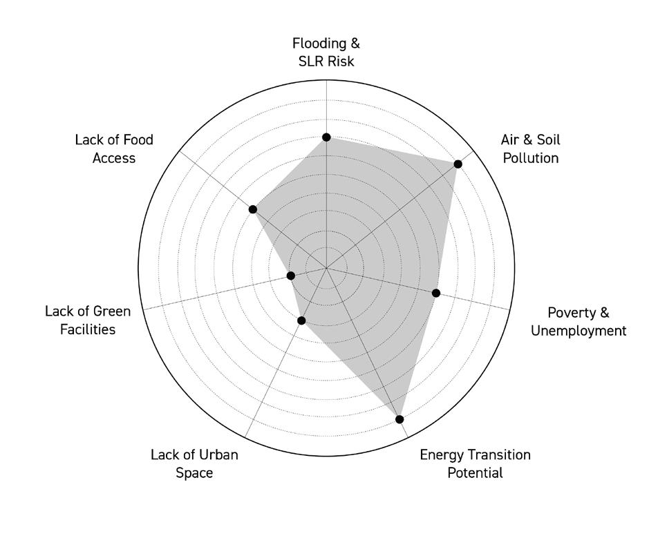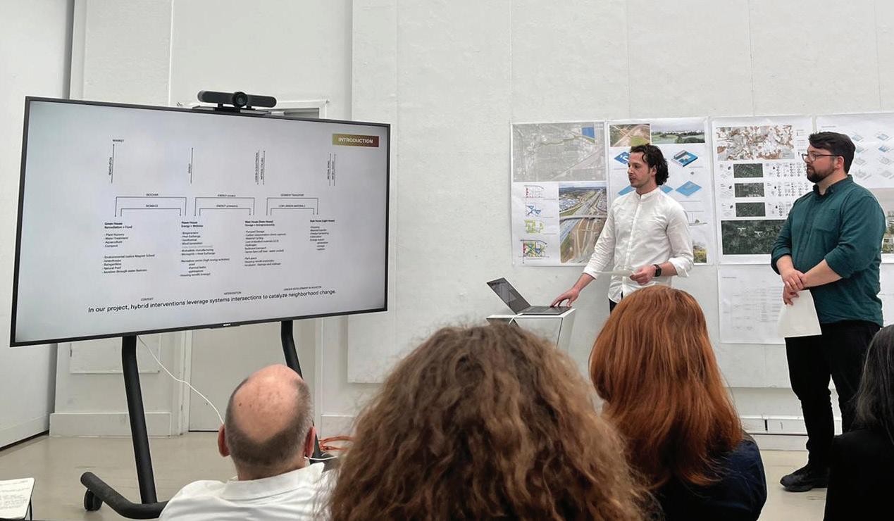 For complex topics such as urbanism, risk, and resiliency, design can play a powerful role as a convener and synthesizer. The aim of the studio was to use design to visualize challenges and opportunities, develop strategies, and innovate and envision the future environments (neighborhoods, landscapes, facilities, and buildings) that a just transition to a climate resilient city could bring, with feedback from local advocates, stakeholders, and experts.