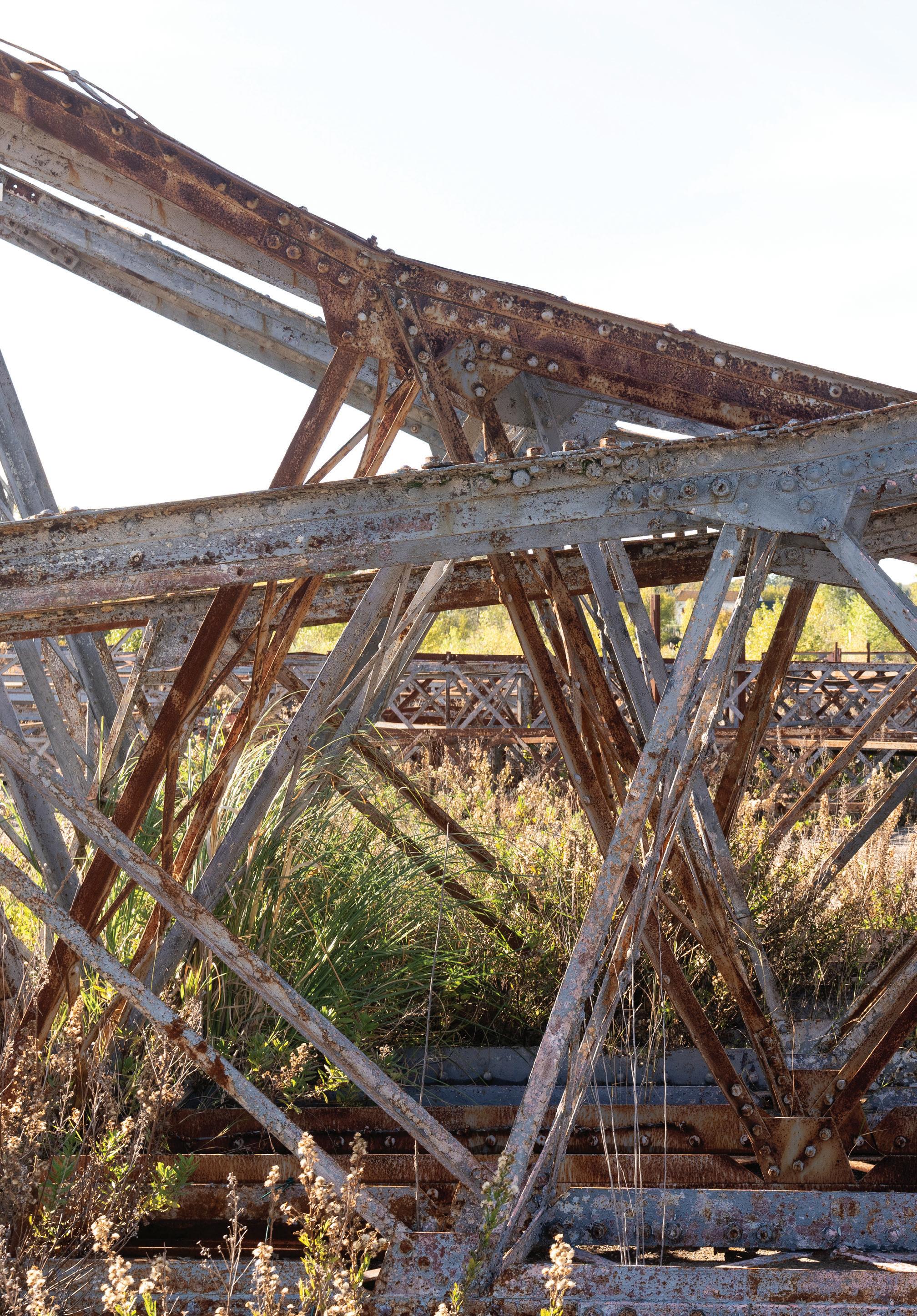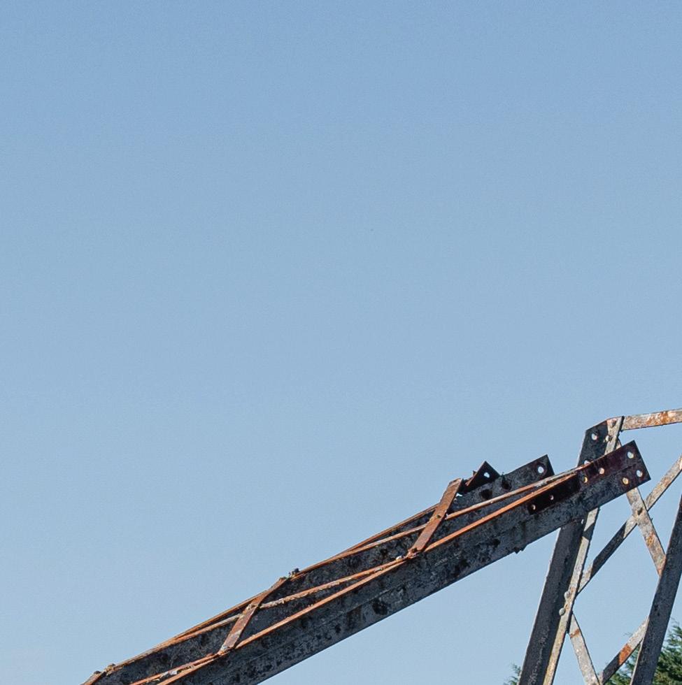 Gustave Eiffel’s dismantled steel structure lying on the site, Arles, France, November 2022. © Austin Sun.The studio’s site is an industrial lot along the Rhone river that formerly housed a paper factory. Located across the bridge from the city center, it is situated in an open, rural context and benefits from a wide view of the river as well as of the city center. While subject to the risk of flooding, the site presents a rare opportunity for new development in Arles, as it is not a historically protected zone. While the students each took different approaches to the site, all of them accounted for the flood risk by using a 100-meter setback from the edge of the river; likewise, all of them reused Gustave Eiffel’s structural steel building elements.