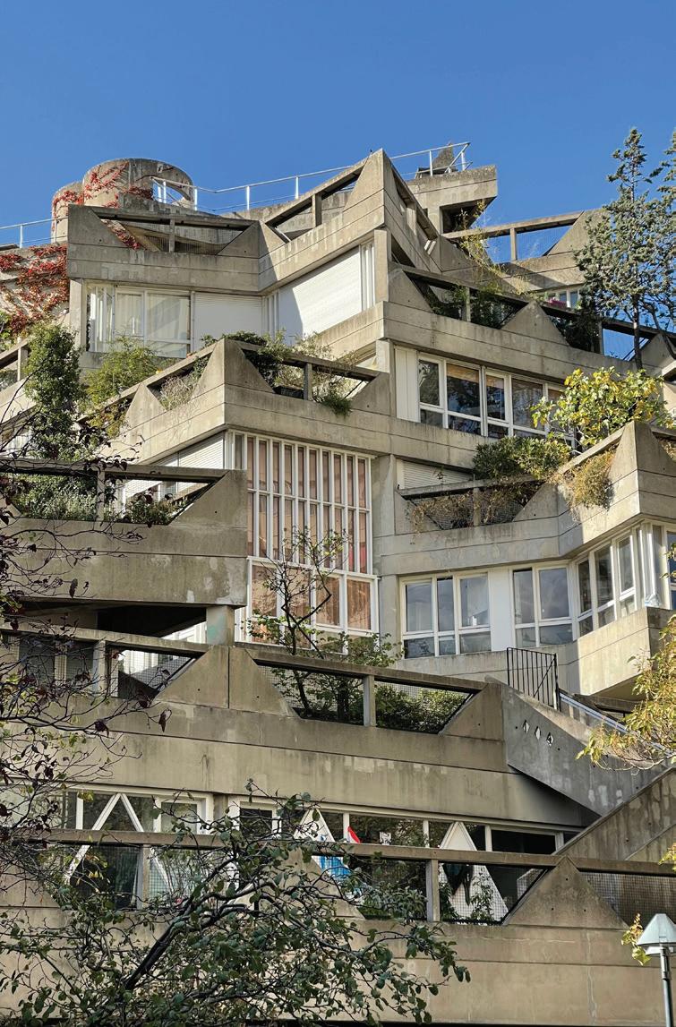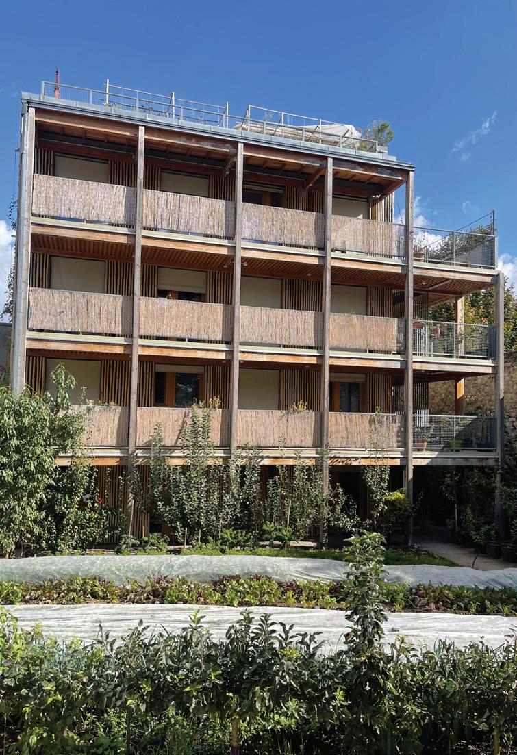 Preparing top and bottom wood ring beams with local timber, Arles, France, October 2022. ©Juliette Dankens. Four layers of shaped and stacked straw bales with one to go, Arles, France, October 2022. ©Juliette Dankens.Beyond the “Embodied Carbon” seminar, students benefited from two additional seminars about housing and communal living, “Housing Matters” and “How to Live Together.” Students traveled to Marseille, Paris, and Bordeaux to visit key precedent projects, which helped shape their approach collectivity in housing in their projects. Precedents are organized according to the themes under which they were discussed in “Housing Matters.” Precedents with an asterisk denote those projects visited in person.
