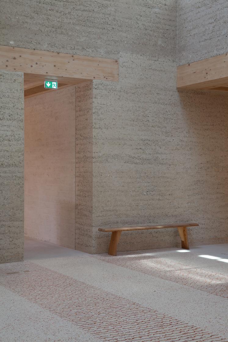 Lot 8 also used the construction process as an opportunity to develop and integrate training workshops that have been given to local craftspeople, students, policymakers, conservation architects, and the general public. These workshops teach the basic principles—both practical and theoretical—of constructing with raw earth, insulating and building with structural straw bale, and using agricultural by-products such as sunflower stems and marrow and rice fibers as soft acoustic and hard internal linings.