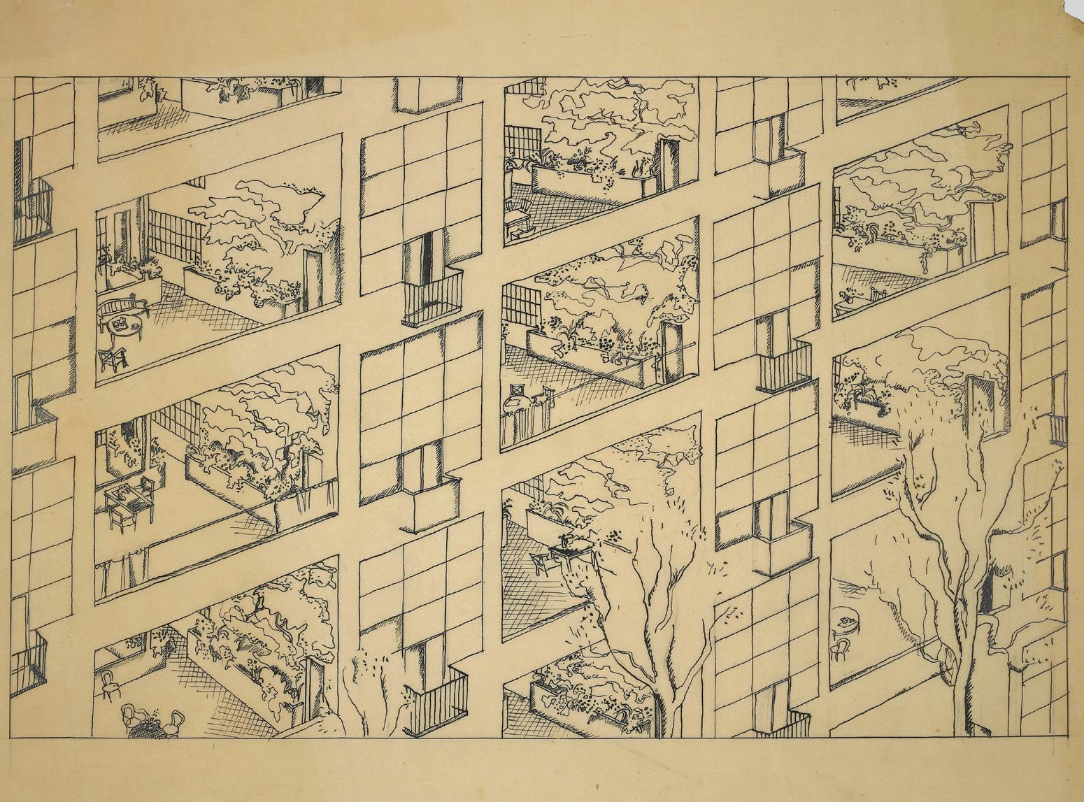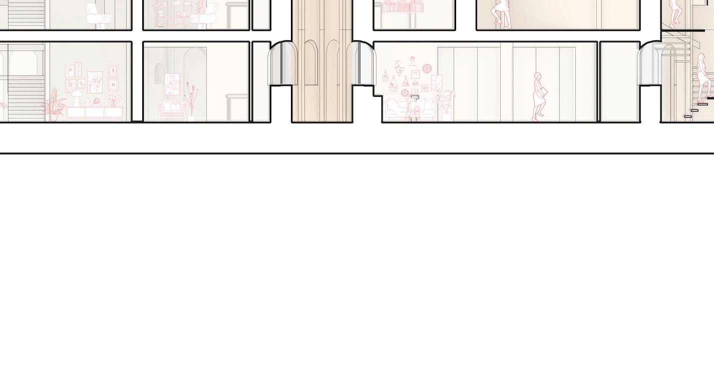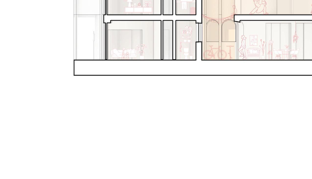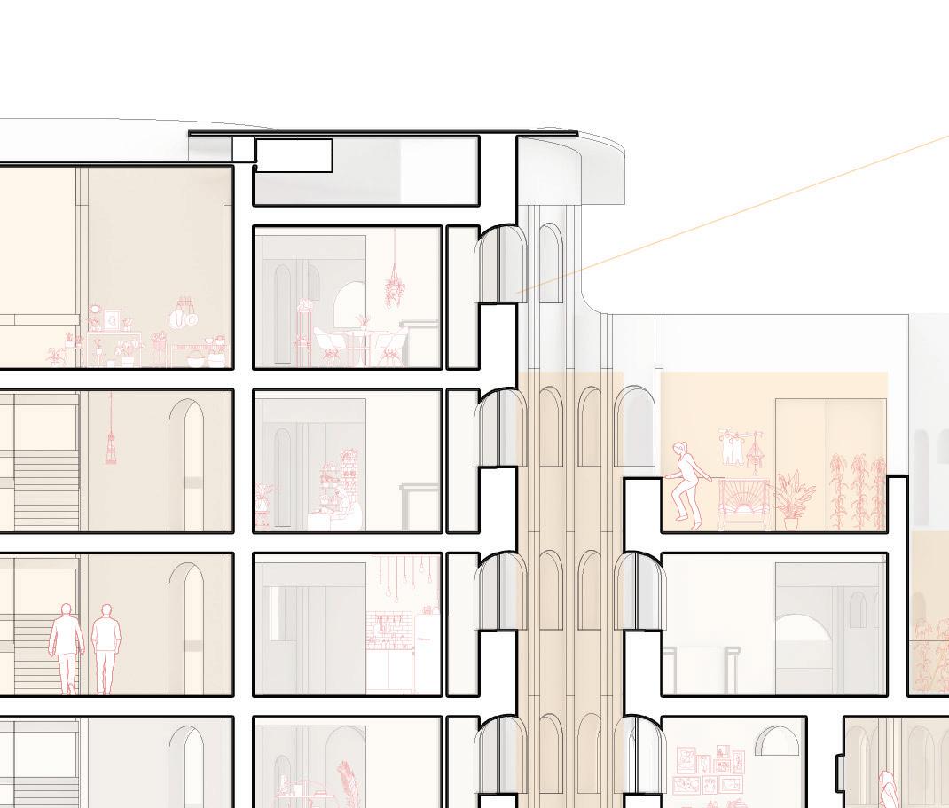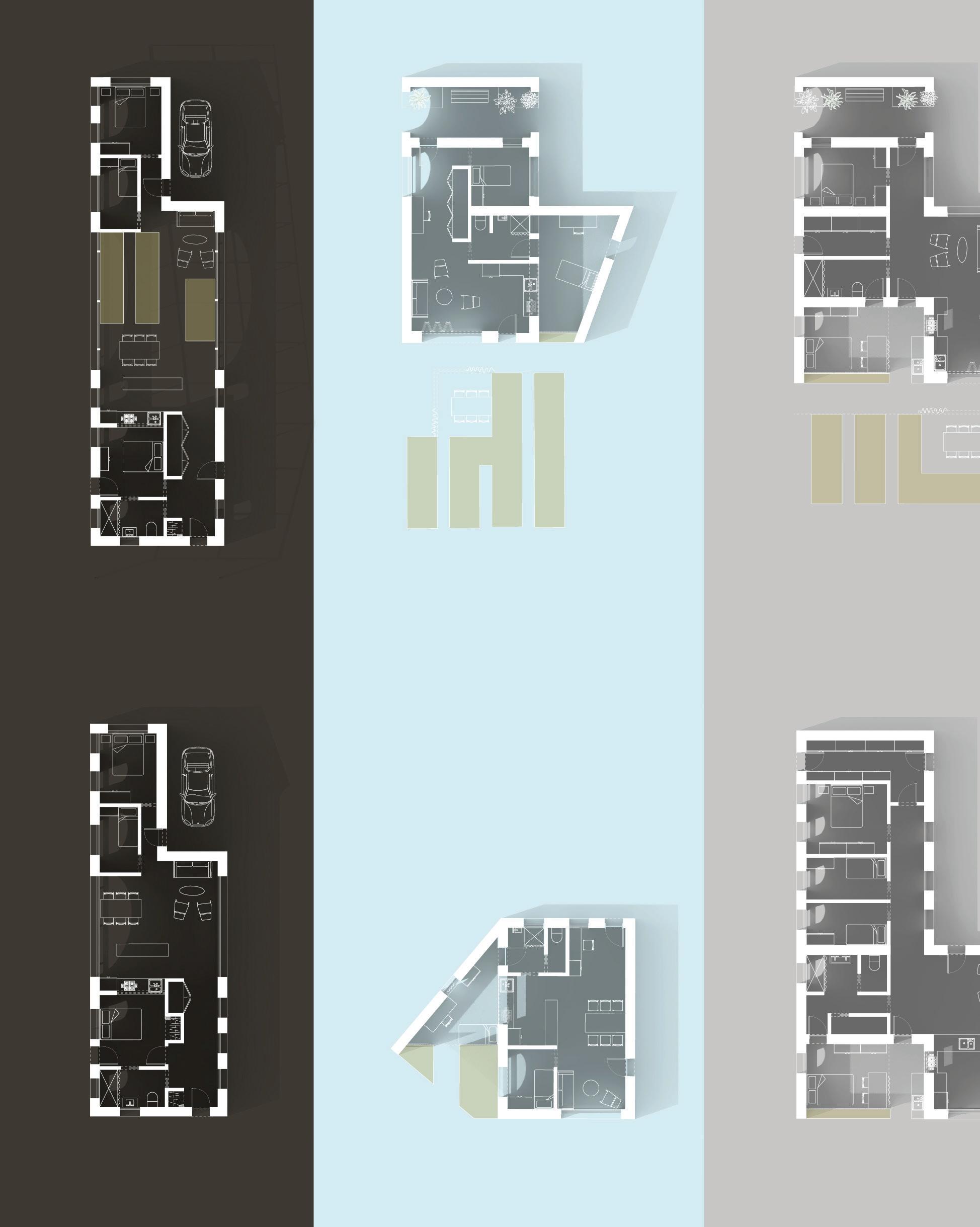 Above: Early conceptual collage about functional spaces of the apartment that are meant to be shared, and private spaces that residents can appropriate and change according to their needs.