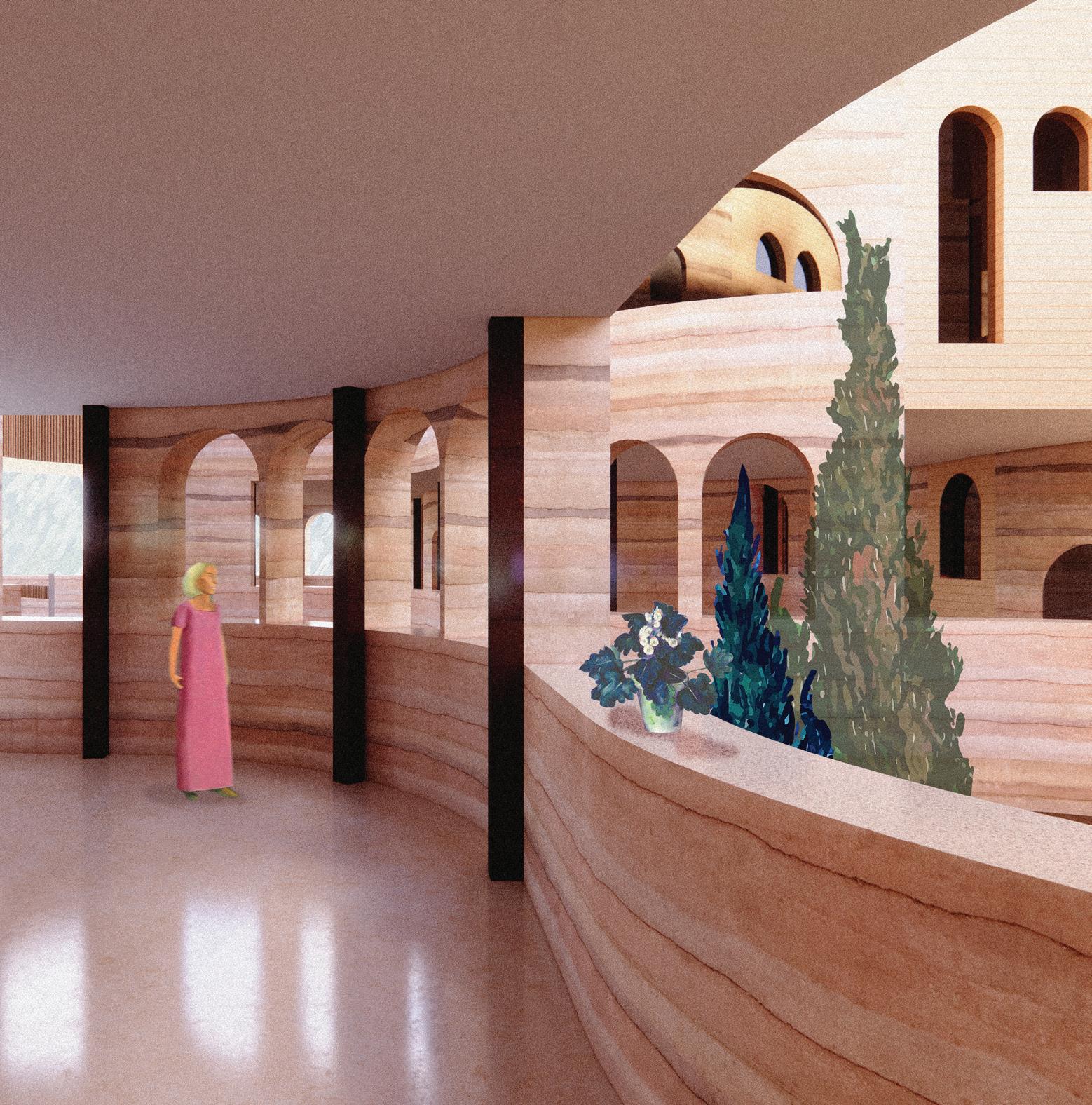 “A Common Balcony” pushes and expands on the political, social, and economic incentives for collective living to also account for environmental motives. It reimagines the role of circulation and questions our current standards of carbon intensive building practices. A majority of the walls are created with low-embodied carbon CobBauge, made with local and on-site straw, clay, and subsoil.