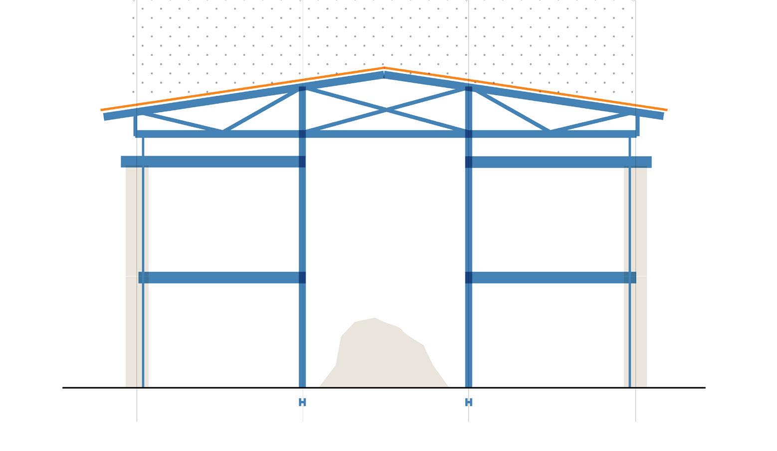 The existing steel on site had to be used as much as possible in the studio projects to avoid the use of carbon-hungry new steel. This structure allowed the students to make elements that at times could be redundant and oversized, but that must always be selected from the existing stock. This steel would provide the primary structural frame, a responsibly sourced material, while other natural materials would be incorporated