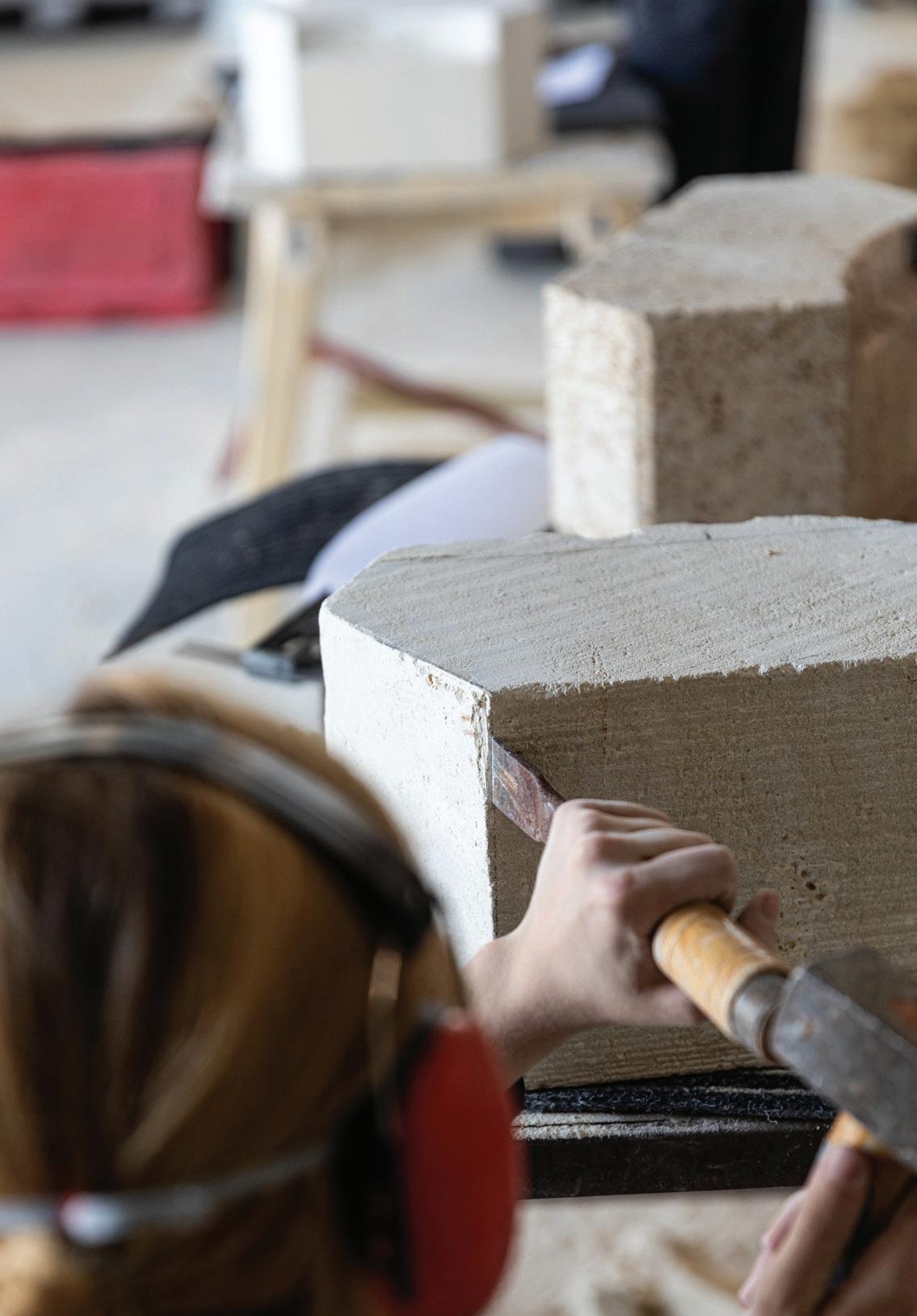 Previous spread: Student carving stone, Arles, France, September 2022. ©Adrian Deweerdt. Courtesy of Atelier LUMA.