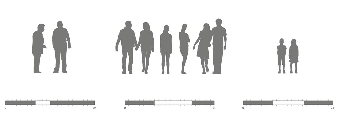Perspective of balcony throughout the day. Serving residents with various lengths of stay and needs, this project situates the balcony as a new collective zone—a place for planned gatherings and chance interactions.