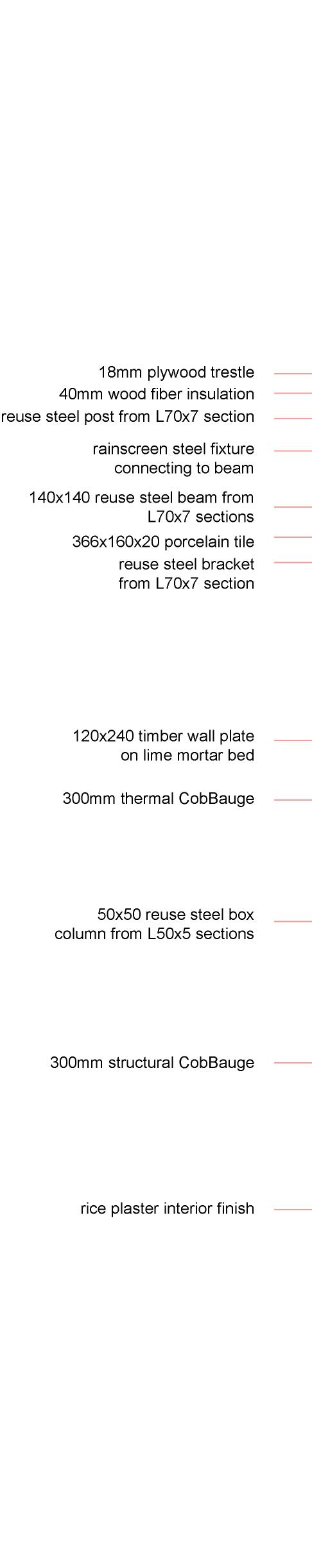 Details of typical wall sections. CobBauge consists of two layers: a thermal mix and structural mix. The structural mix consists of straw and subsoil while the thermal mix contains clay slip and fiber.