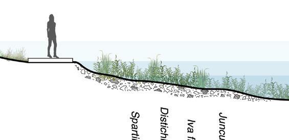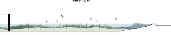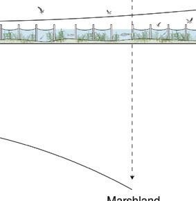 Below: The landscape at grade evolves into a marshland ecosystem, shown below as it transforms over time.