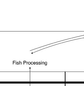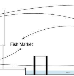 As flooding becomes more frequent the site as a social space of mobility and maritime industry (plan of fish processing program and mobility hub at left) gradually migrates upwards in elevation to occupy a new, higher ground level.