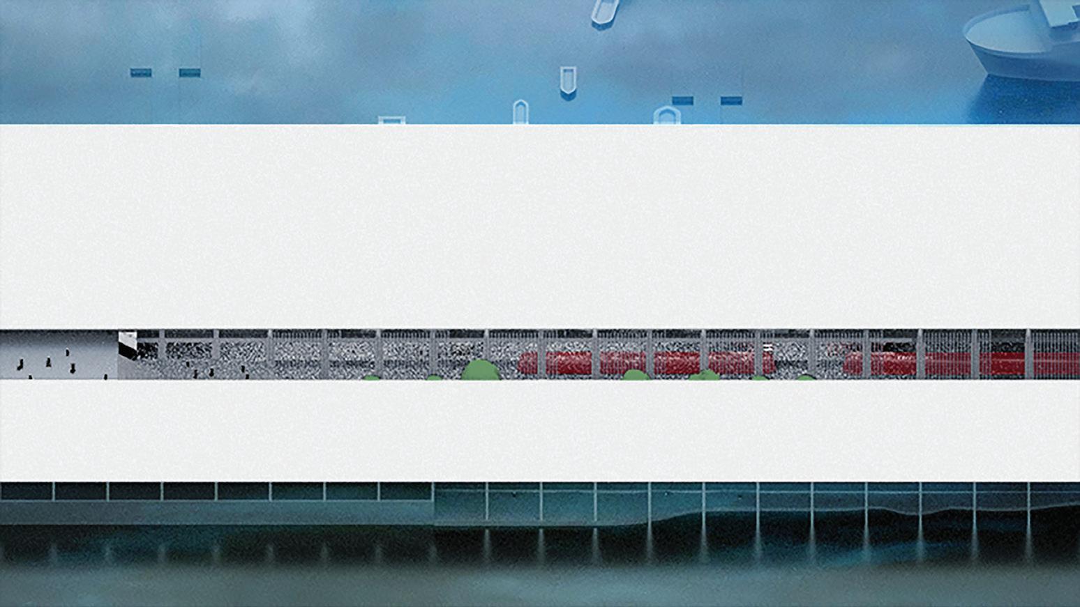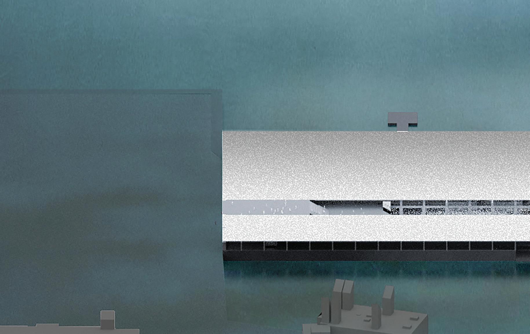 Under counterfactual conditions, Dry Dock II will be transformed into a new urban center with accessible public transportation facilities, higher density residential areas and more multi-functional industrial zones, while revitalizing the existing Track 61 railroad system. Given existing site conditions and the impending deluge of storm surge in this area, a new datum elevation will be established at +28’ to unify the city’s elevation. This new “sealevel” will be the base for a new city interface, with a flexible, floodable space at grade. Roofs and other infrastructures will be traversed in a multi-height landscape.