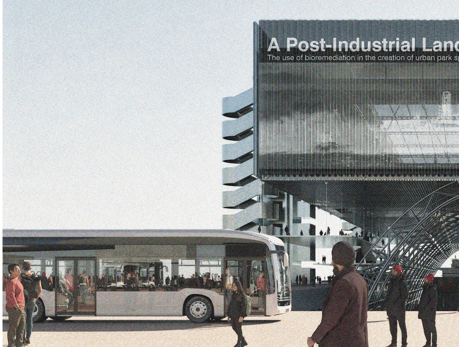 In collaboration with AECOM, the brief was developed to address systems-linked architecture through the program of a transportation hub on post-industrial sites that are vulnerable to climate instability and flooding. The program is devoted to public space and shared mobility with the intersecting purpose of infrastructural decarbonization and social connectivity. The work directly considers a paradigm of decarbon-