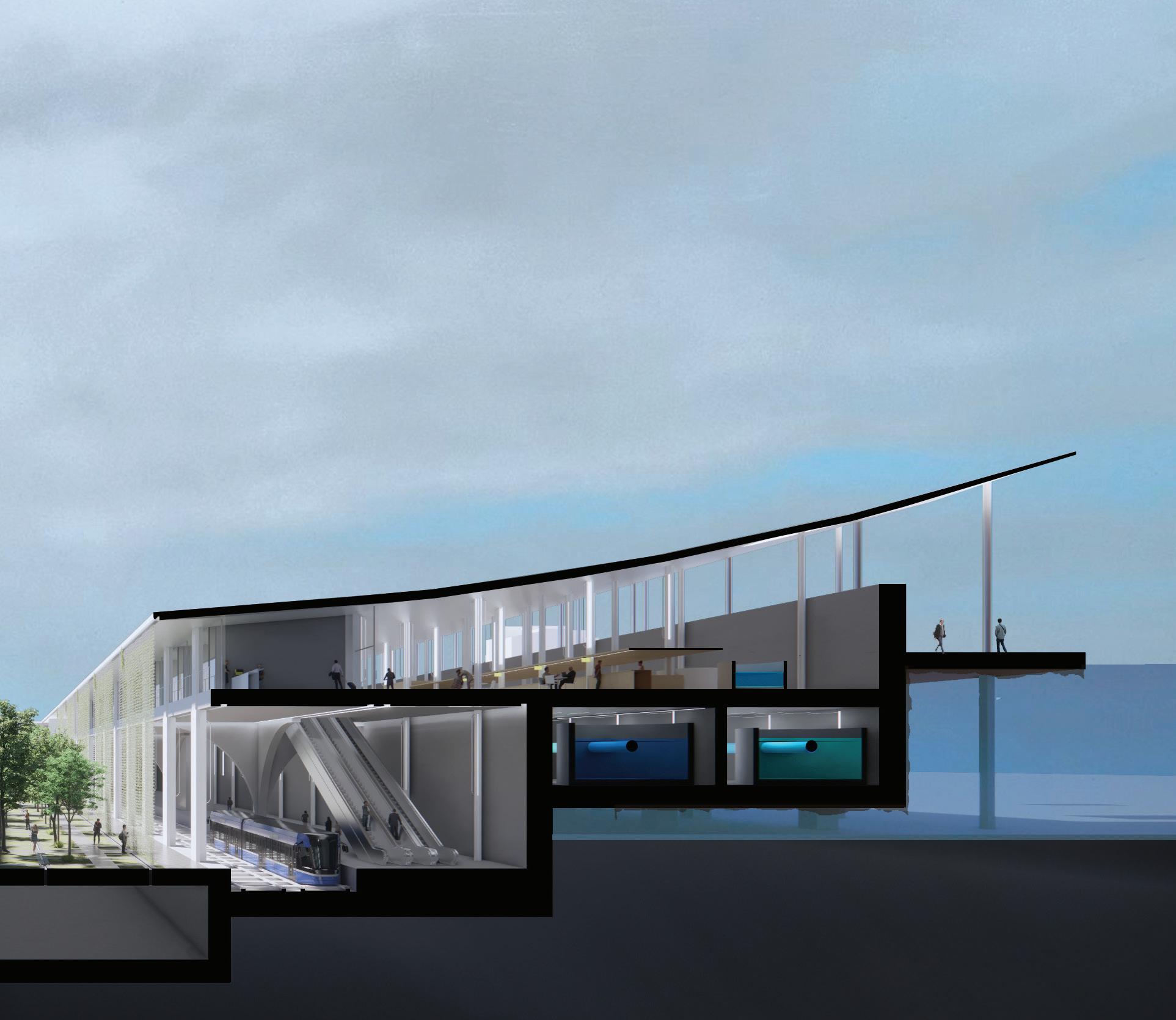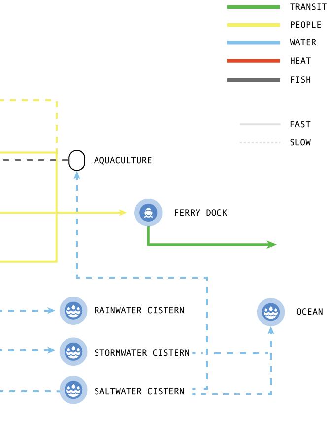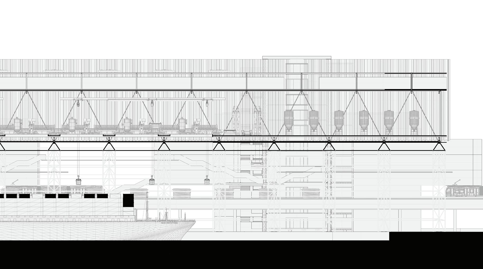 between all actors on the site, from trains and technology to people and fish, are explored throughout the work that follows. In so doing, the students have sketched out a systems-linked architecture that embraces complexity as a temporal, social, biological, and technological construct. Their work yields an architecture