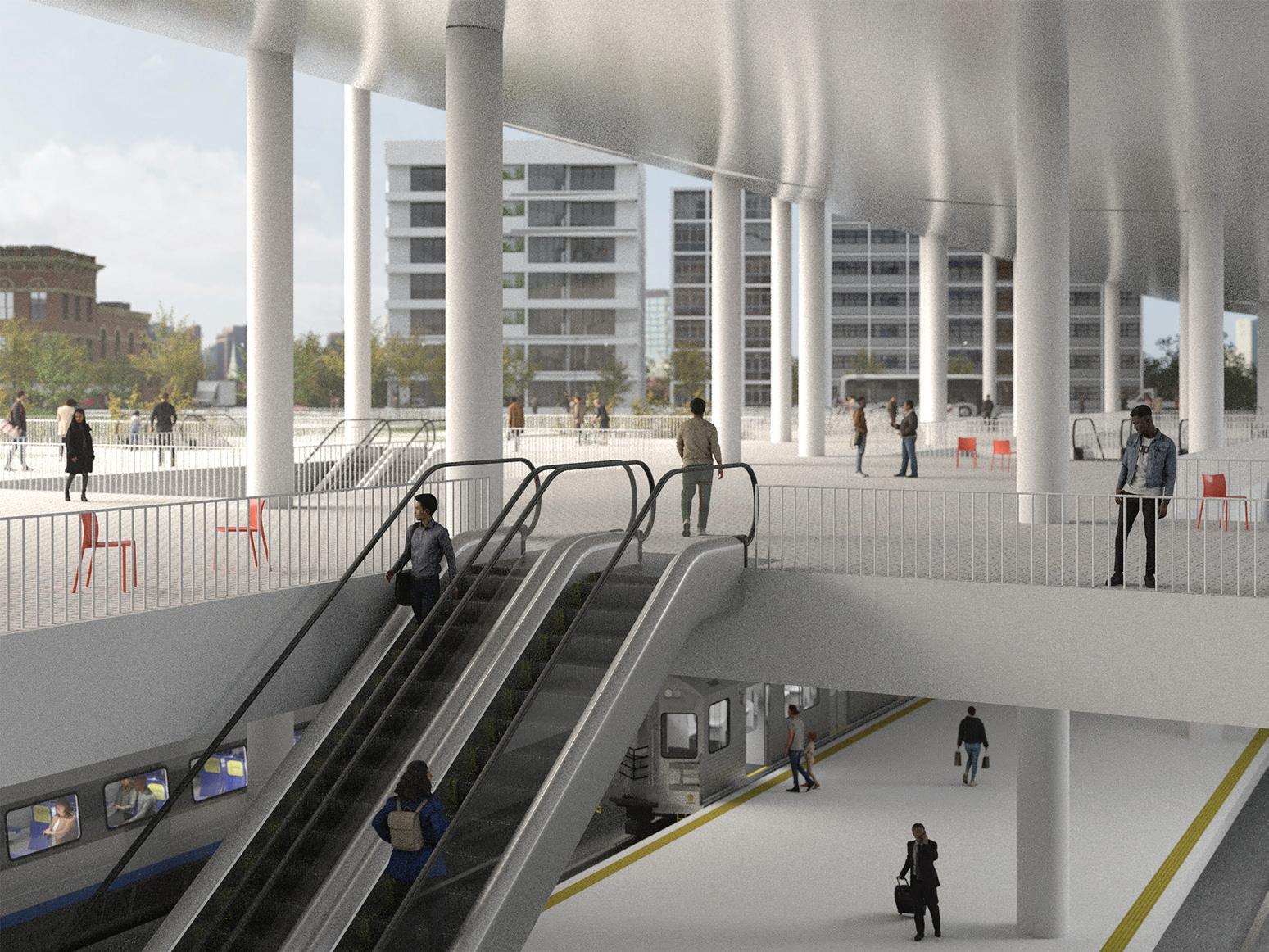 We believe that making a robust and resilient transit hub begins by challenging the existing notion of infrastructure as a perfect, non-destructible system; infrastructure is in fact, “common, negotiable, potentially perishable.” The infrastructure must adapt in tandem with social and environmental changes to continue to serve as a destination for the public. When imagining the imminent future, a new destination of connection, both in physical and social sense, must provide a new sense of togetherness (the “New Sublime”,) not just among citizens but also with species, water, and energy.