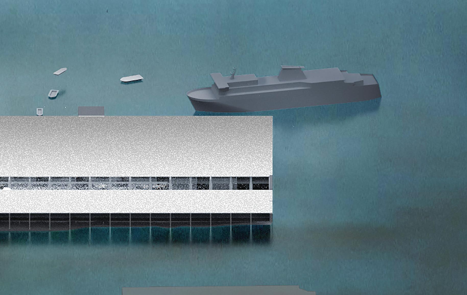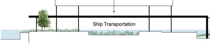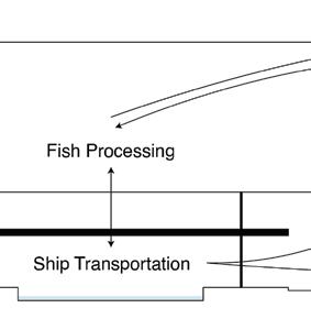 Dry Dock II serves as a transportation hub for the Seaport District, assuming three modes of transportation: rail, bus, and ferry/ship, and is an important hub for regional transportation and production and consumption. Additional programs on the site will include a fishing processing plant.
