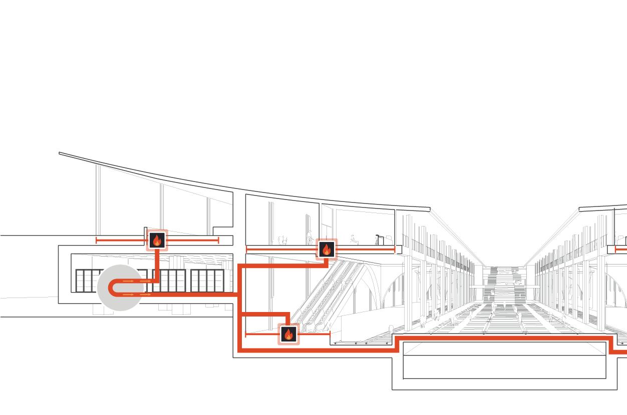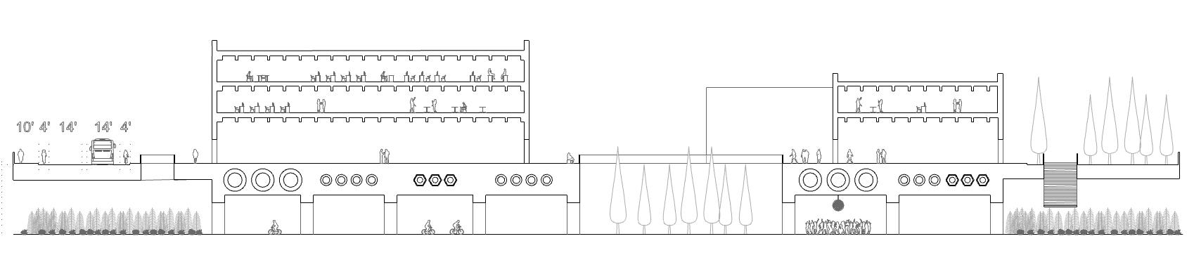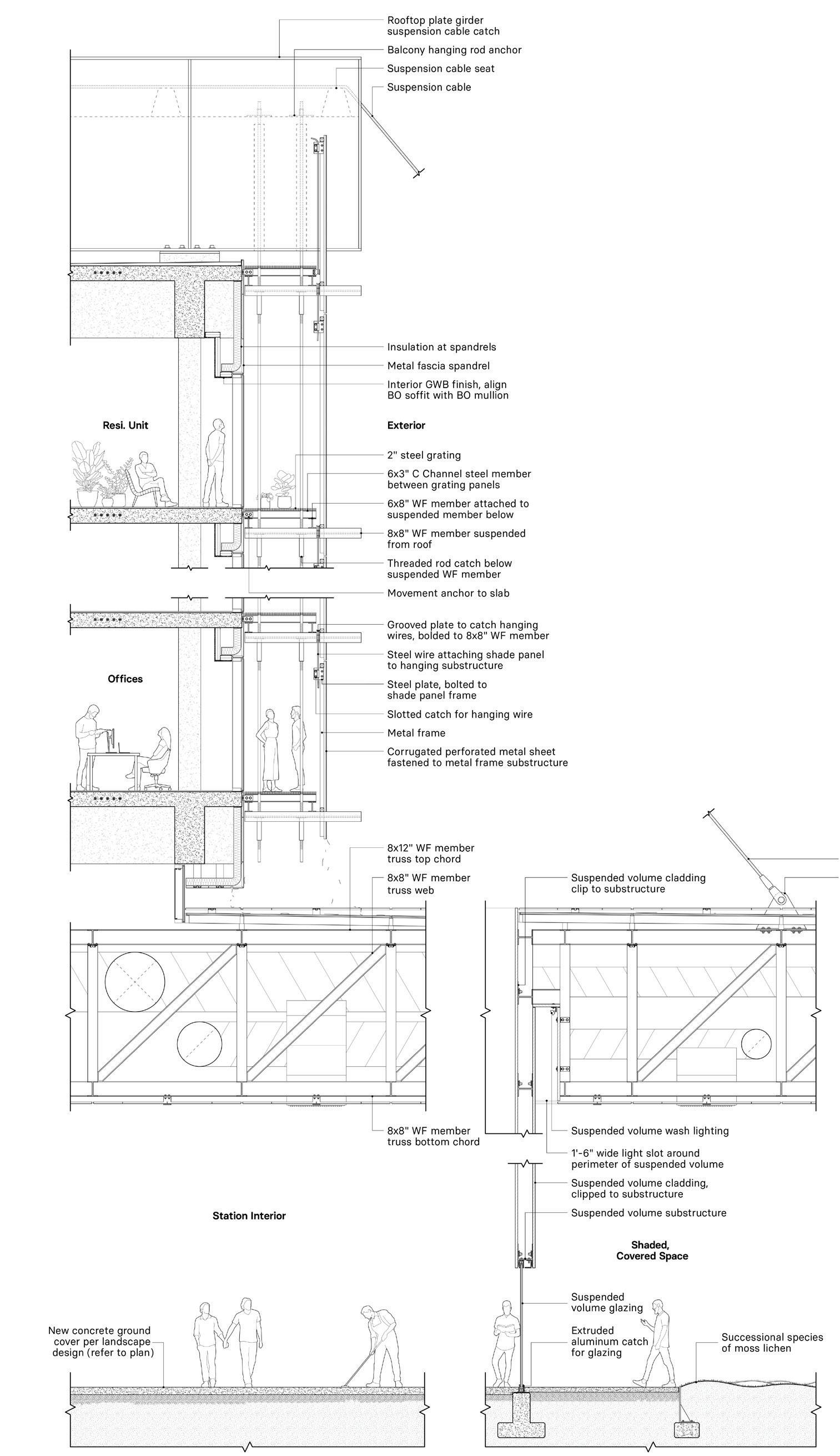 The hub operates at three scales: the macro-scale of transportation, the meso-scale of program and building systems, and the micro-scale of the human experience. Our site physically connects people to one another through transit, but also creates connections on site through integrated and interactive systems and programs. By fostering different types of connection, the hub allows for continued and evolving forms of civic engagement and fascination. We hope not to develop ever-enduring, utopic system, but instead to create resiliency in the face of fallacy, to adapt and adjust in the inevitable occurrences of an ever-changing world.