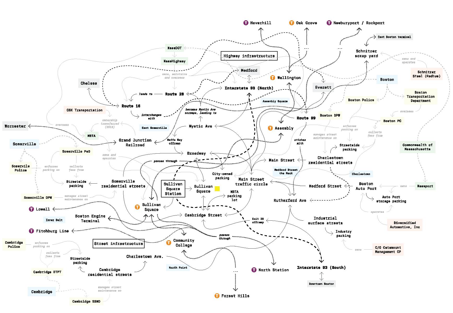 In addition to municipal planners from the City of Boston, transportation planners and designers from AECOM generously participated as expert planning, design, and engineering advisors across the semester. We were also grateful to have the perspective of local design practitioners actively working on the Boston sites in question and theorists considering the changing nature of infrastructural space within the discipline more broadly. Studio guests presented pragmatic constraints for transportation design, historical context for contemporary spaces of infrastructural operation, and conceptual methods and approaches to creating productive design specu-