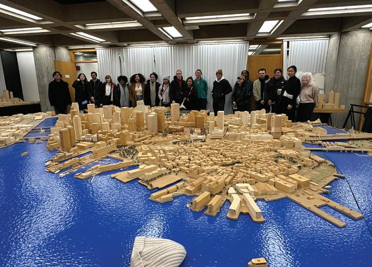 with the Boston Planning and Development Agency (BPDA) Chief of Planning and his Senior Advisor. Through an extensive discussion and tour of the City Hall model room we learned about the political and practical drivers behind site transformation; about timelines for change and the competing challenges of climate risk and the need for thorough public processes. Students were able to understand the urban mechanics driving design decisions around the scale and nature of our specific sites.