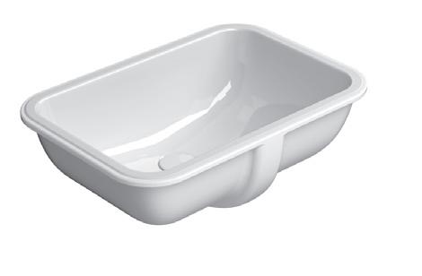 Lavabo con foro troppopieno, predisposto per rubinetteria a parete o su piano. Installazione sottopiano / Washbasin with overflow, designed for wall or countertop tap fittings. Under counter installation / Waschtisch mit Überlauf, geeignet für Wand- oder Standarmaturen. Unterbaubefestigung