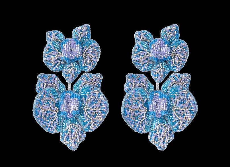 Meticulously handcrafted using traditional Indian, Haute Couture jewellery-making techniques, a single earring requires 16 hours of workmanship. Inspired by orchids, hibiscus and peony flowers, the petals have been finished in premium quality metals and studded with an intricate mosaic of tiny beads and gemstones that have been specifically cut to enhance their luminosity and color. The perfect pieces to add a colorful twist of refined femininity to summer ensembles.