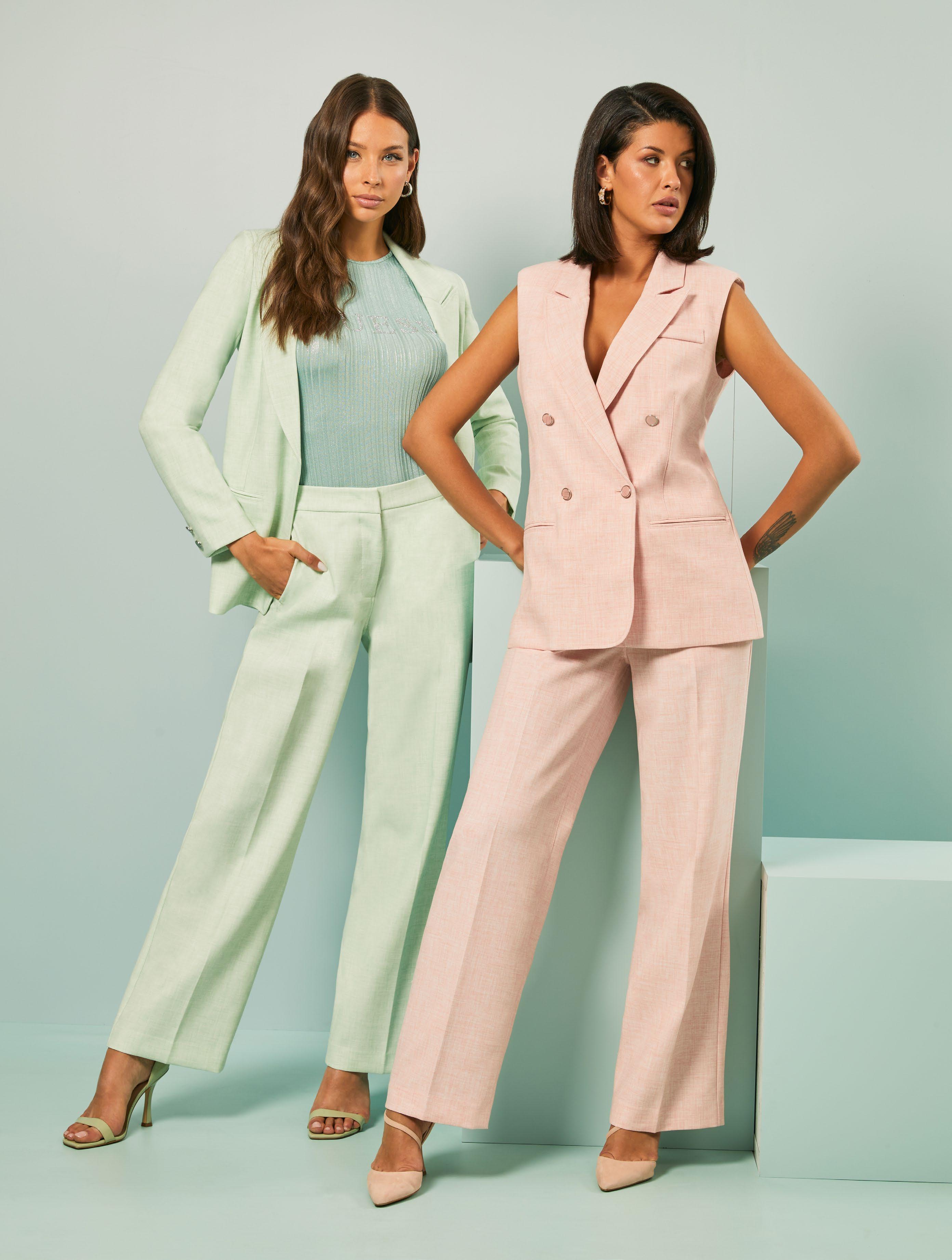 This page: On Francesca, Corinne Blazer and Creme De Menthe Eliane Pants On Liza, Corinne Vest and Pink Eliane Pants Opposite: On Francesca, Alphabet Charm Melissa DressIt’s time to make room in your closet. Here’s the best of the SS24 fashion trends.
